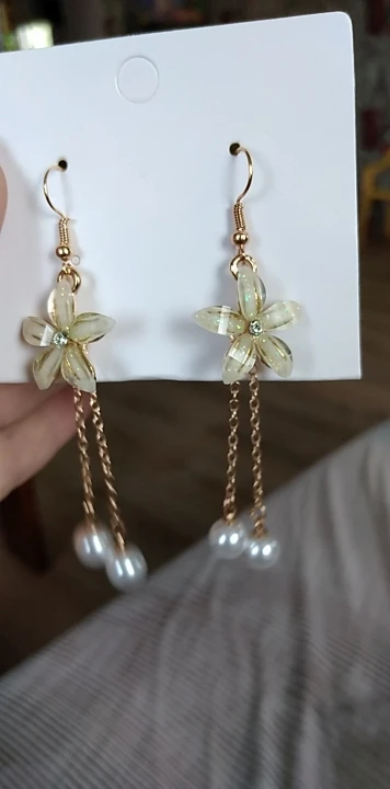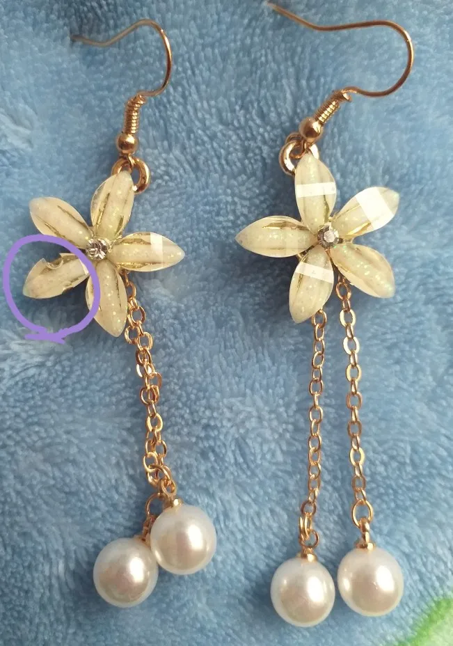 Красивые серьги, но я прихожу с небольшими сломанными отверстиями с обеих сторон одной из лепестков☹ Ну, я снова заказываю 2 пары, я надеюсь, что они прибывают хорошо без каких-либо дефектов, потому что они очень милые.