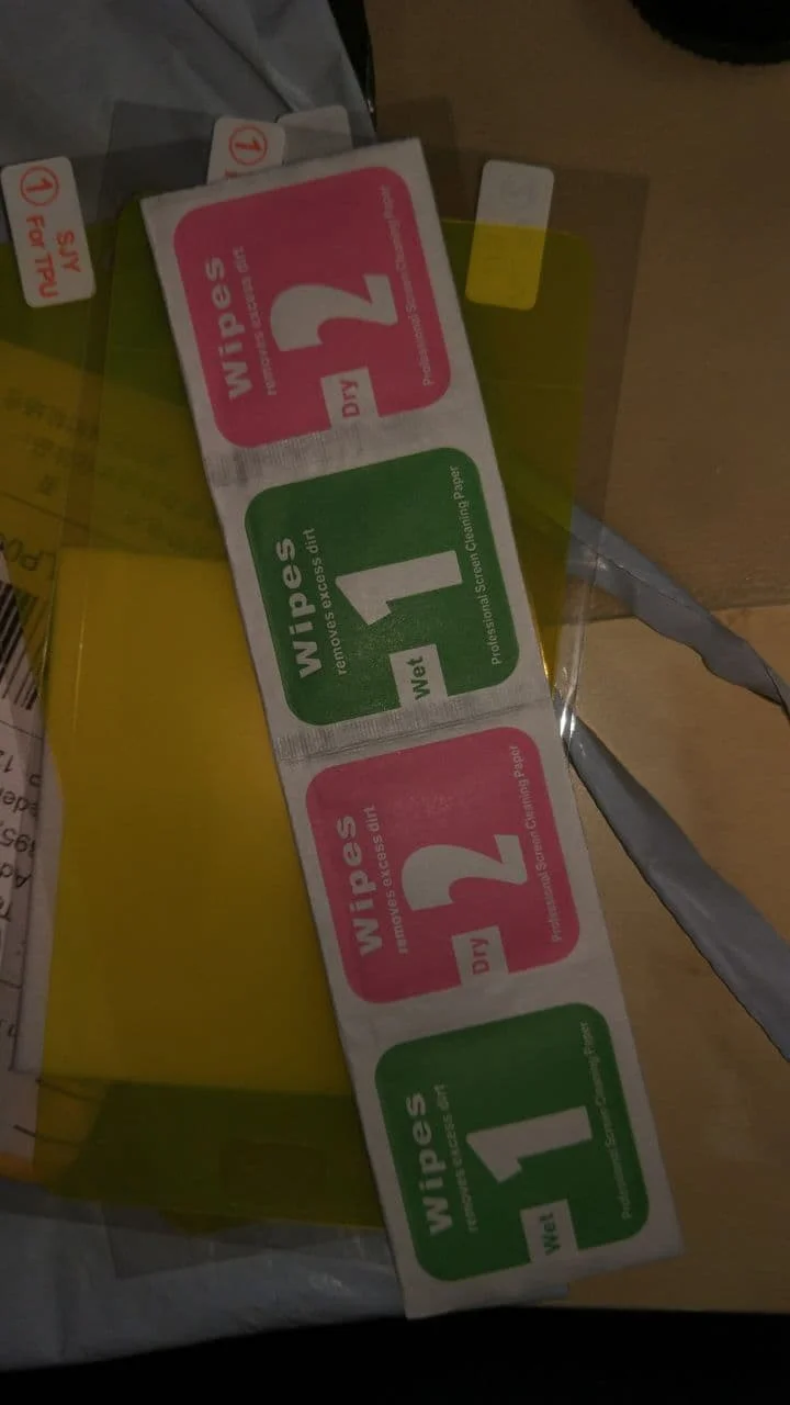 Пленки пришли за месяц, в комплекте влажные и сухие салфетки и картонка для ровной наклейки. По размеру соответствуют. Покупал в запас, поэтому ещё не клеил, но до этого брал гидрогелевые пленки у другого продавца и считаю, что они лучше обычных. По крайней мере клеить их проще.