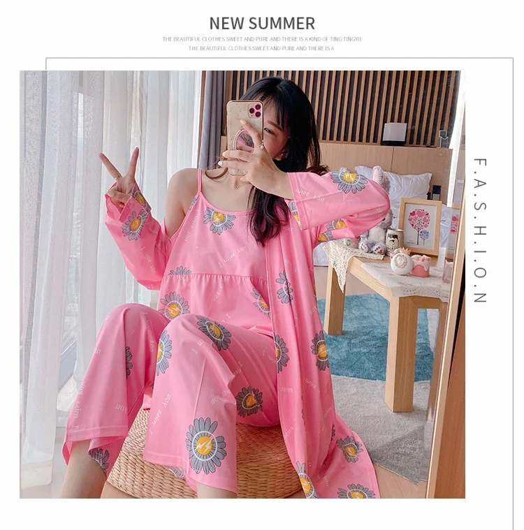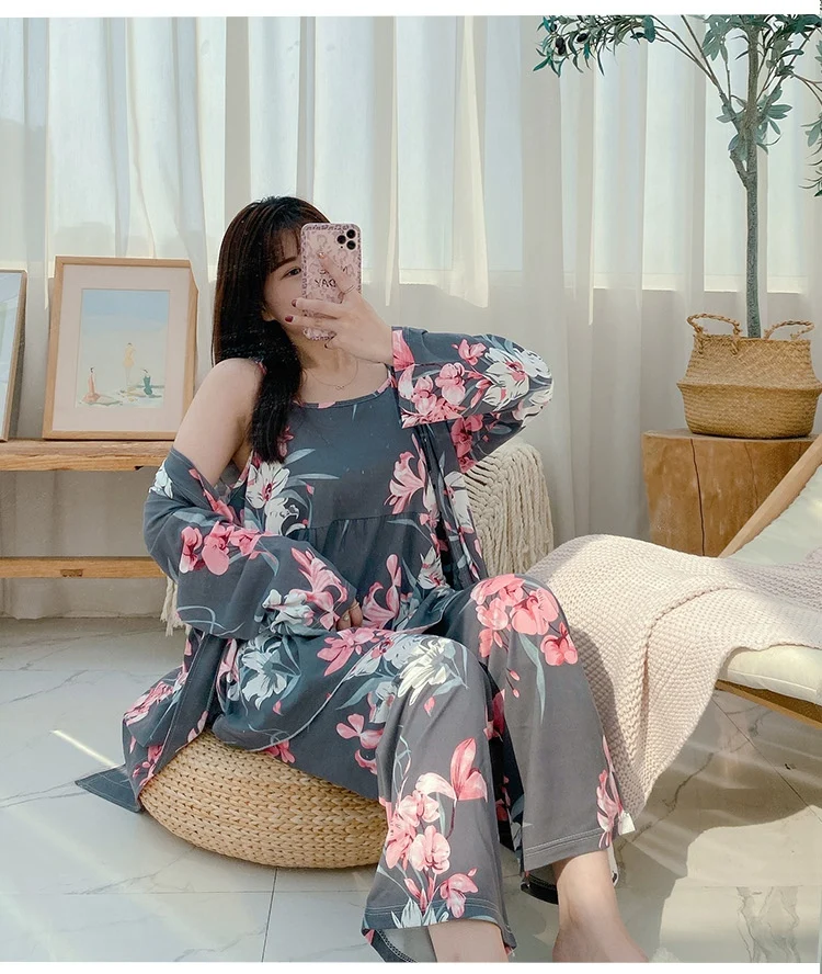 Комплект пижамный Женский, с длинным рукавом, цвет в ассортименте, M L XL XXL, 3 шткомплект, 2021