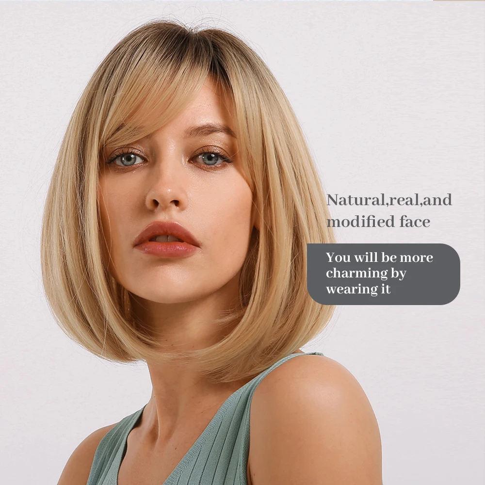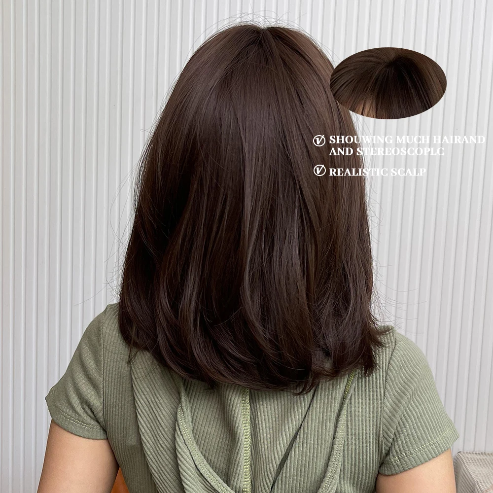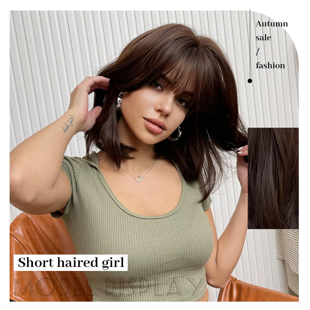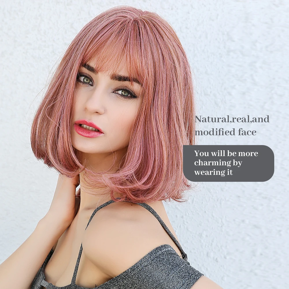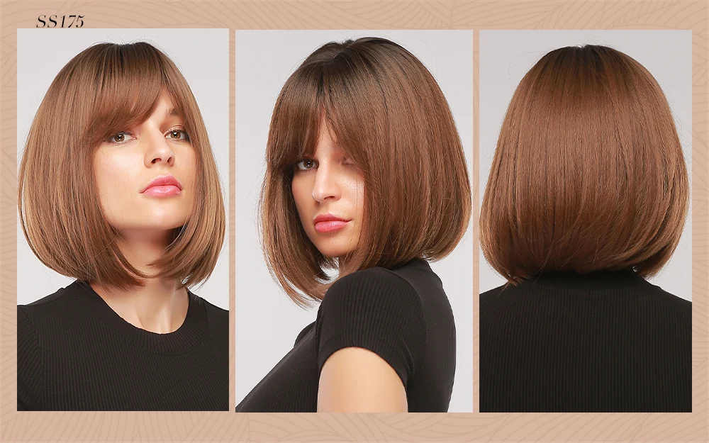 ESIN темно-коричневый парик с эффектом омбре фиолетовые бобы с челкой для женщин Средние Длинные прямые волосы парик синтетическая прическа для косплея