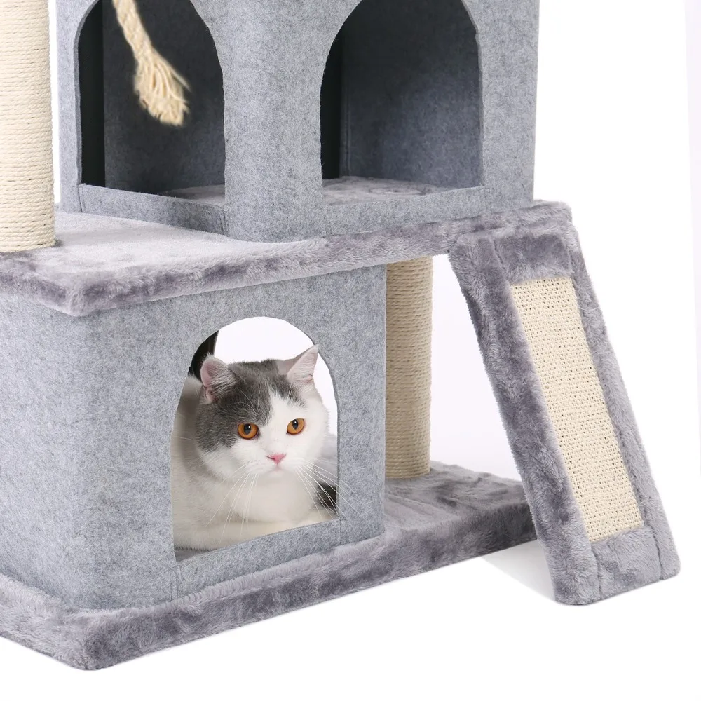 Весело играть: Многоуровневый дизайн предлагает идеальную игровую площадку для ваших кошек, чтобы прыгать вверх и вниз;Когтеточки и нижняя накладка, покрытая на натуральная сизалевая веревка, защитят вашу мебель от острых когтей.