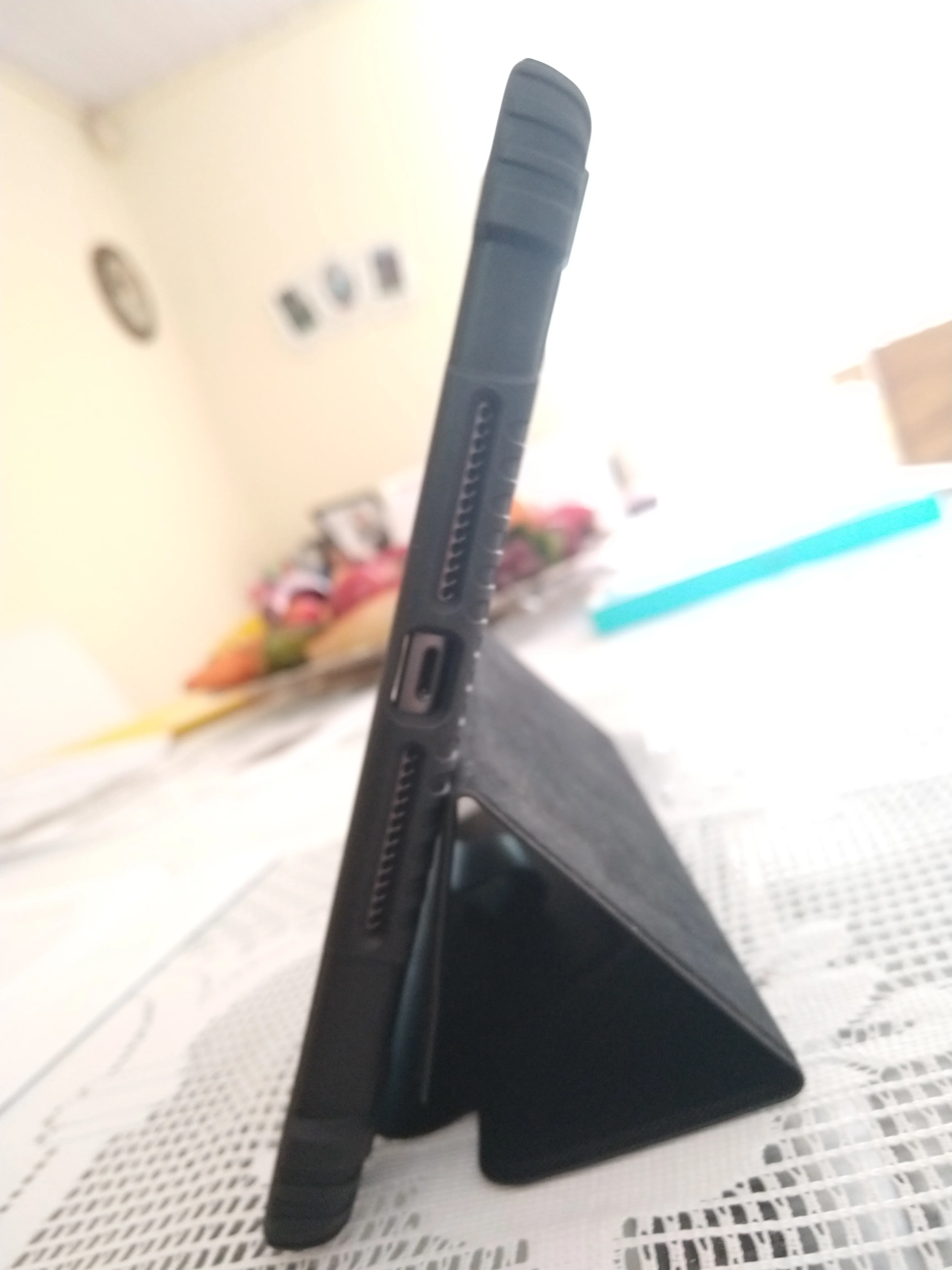 Чехол изготовлен из полутвердой резины, которая отлично подходит для iPad, Единственная проблема, с которой я обнаружил, что чехол немного свободный, когда крышка закрыта, и сначала он стоил мне немного, чтобы согнуть крышку, чтобы я мог ipad в вертикальном положении, но все остальное отлично.