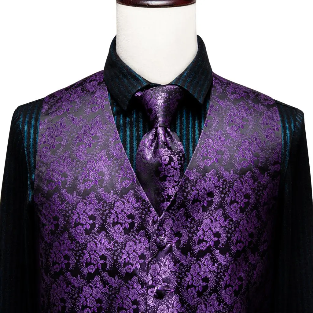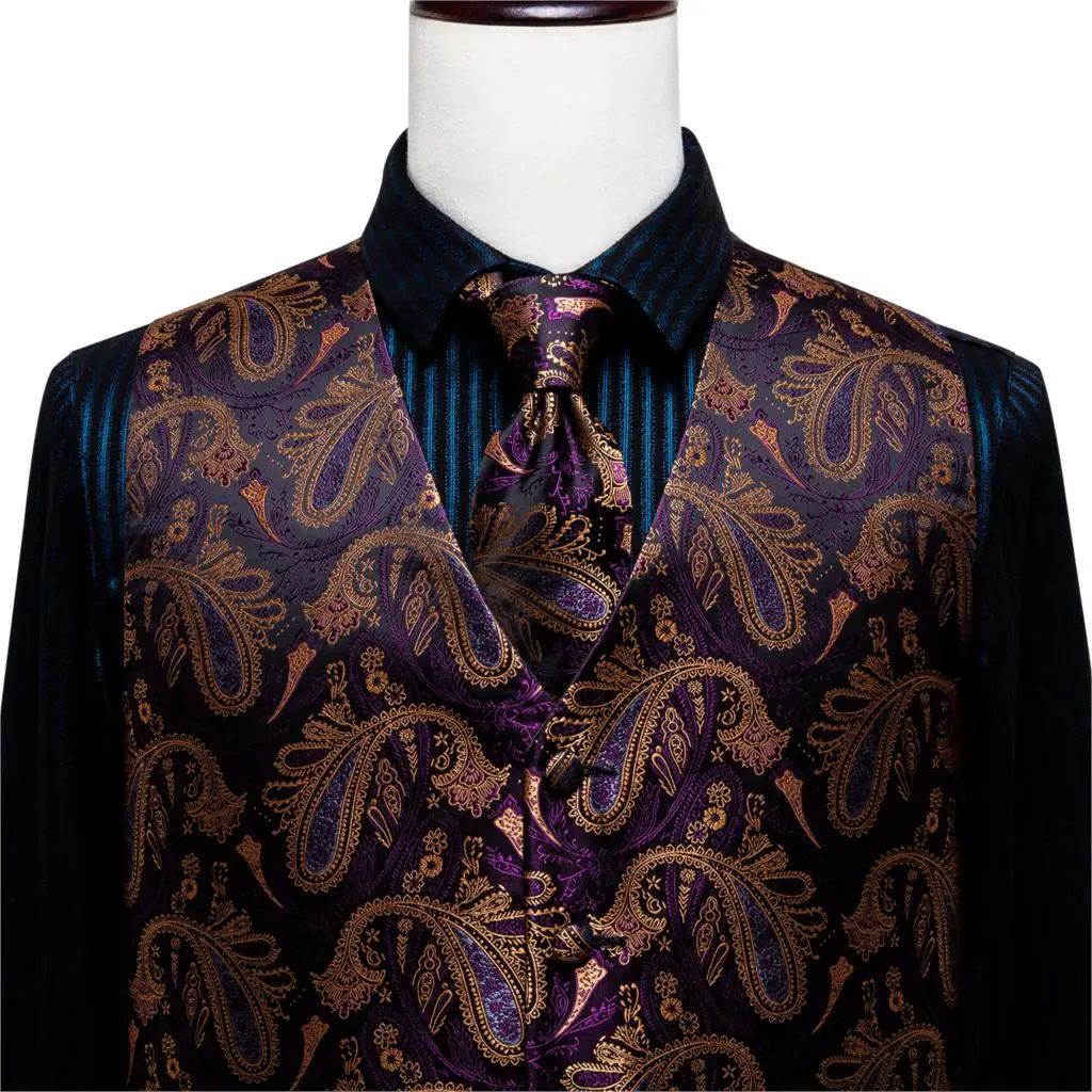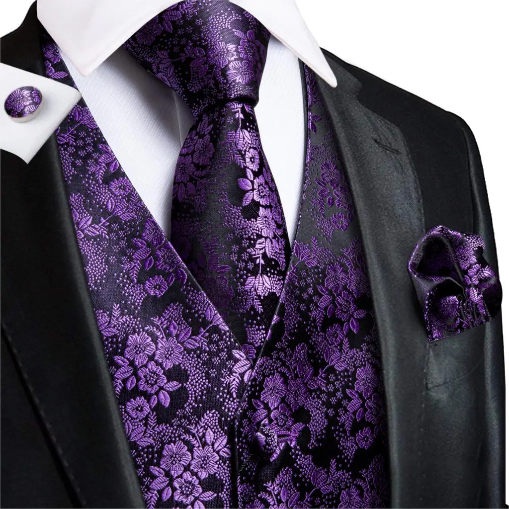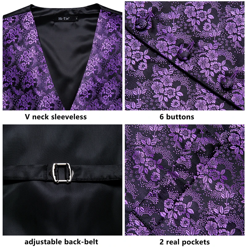 Hi-Tie мужской жилет, роскошный классический фиолетовый жаккардовый Шелковый жилет, платок, запонки, набор, жилет, костюм для мужчин, вечерние, свадебные