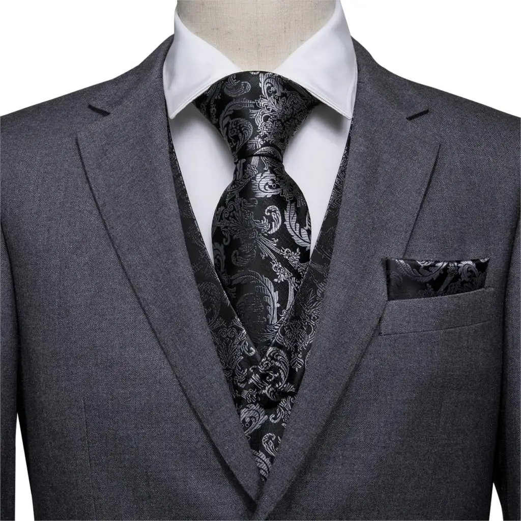 Роскошный черный мужской жилет Hi-Tie с пейсли-принтом, свадебные з...
