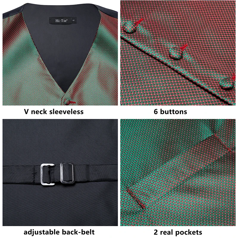 Hi-Tie мужской жилет костюм винно-красный 100% шелк Пейсли тканый в...