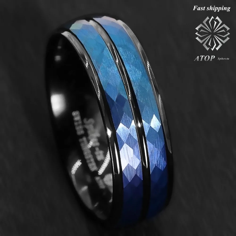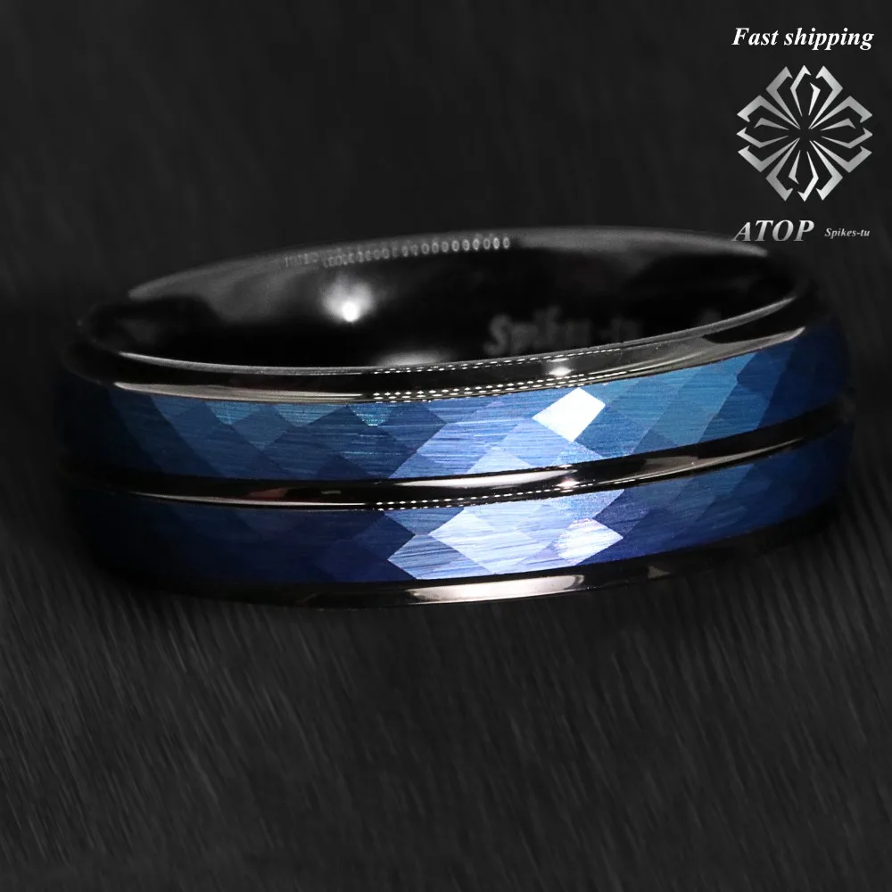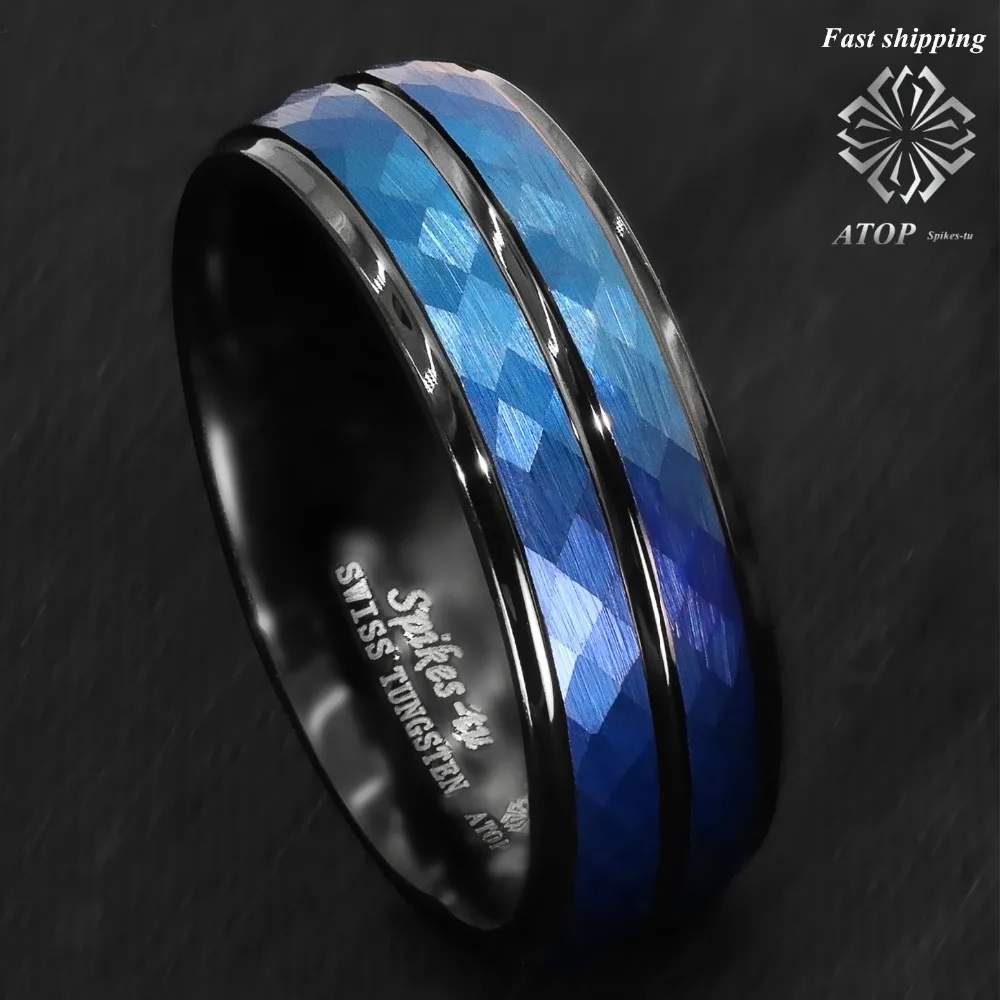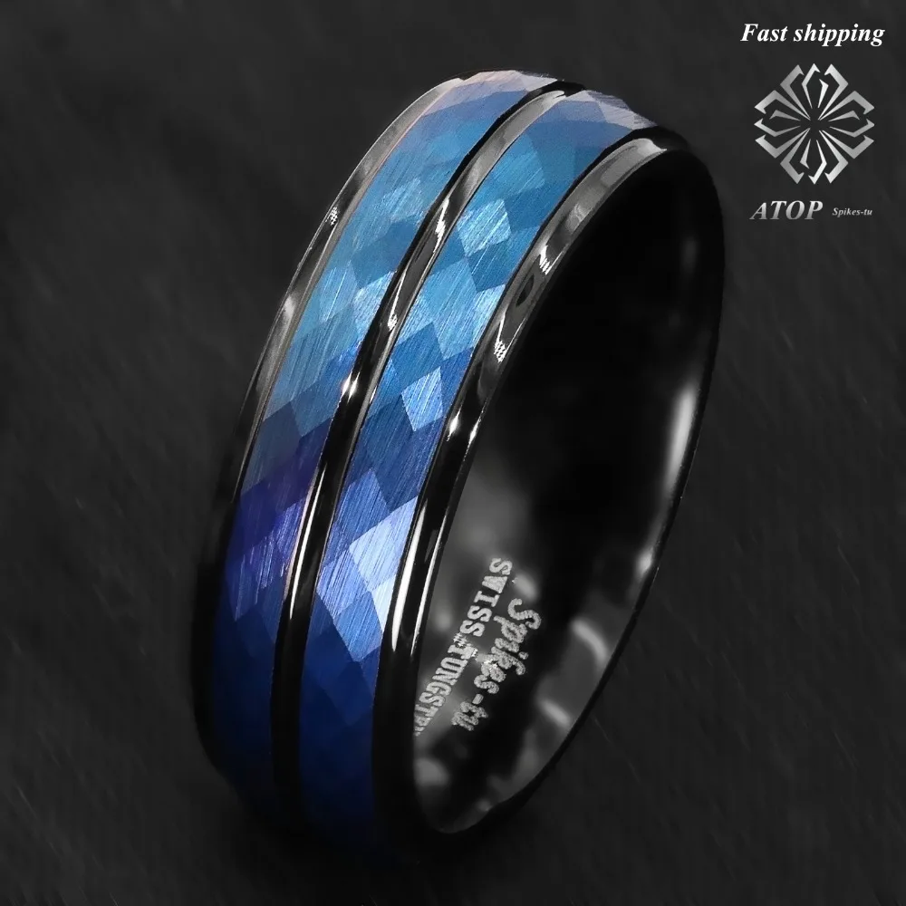 Мужское вольфрамовое кольцо ATOP, 8 мм, с начесом, синего и черного...