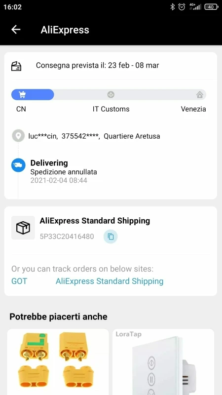 Страна: IT Доставка: Standard Shipping 05.03.2021