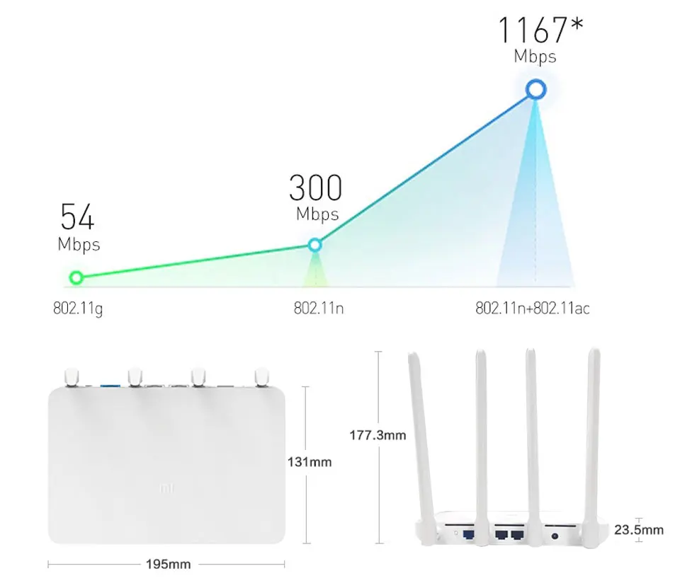 Оригинальный роутер Xiaomi Mi WiFi 3G 1167 Мбитс 2,4 ГГц 5 ГГц двухдиапазонный 128 МБ ROM Wi-Fi 802.11ac Четыре мощные антенны с высоким коэффициентом усиления