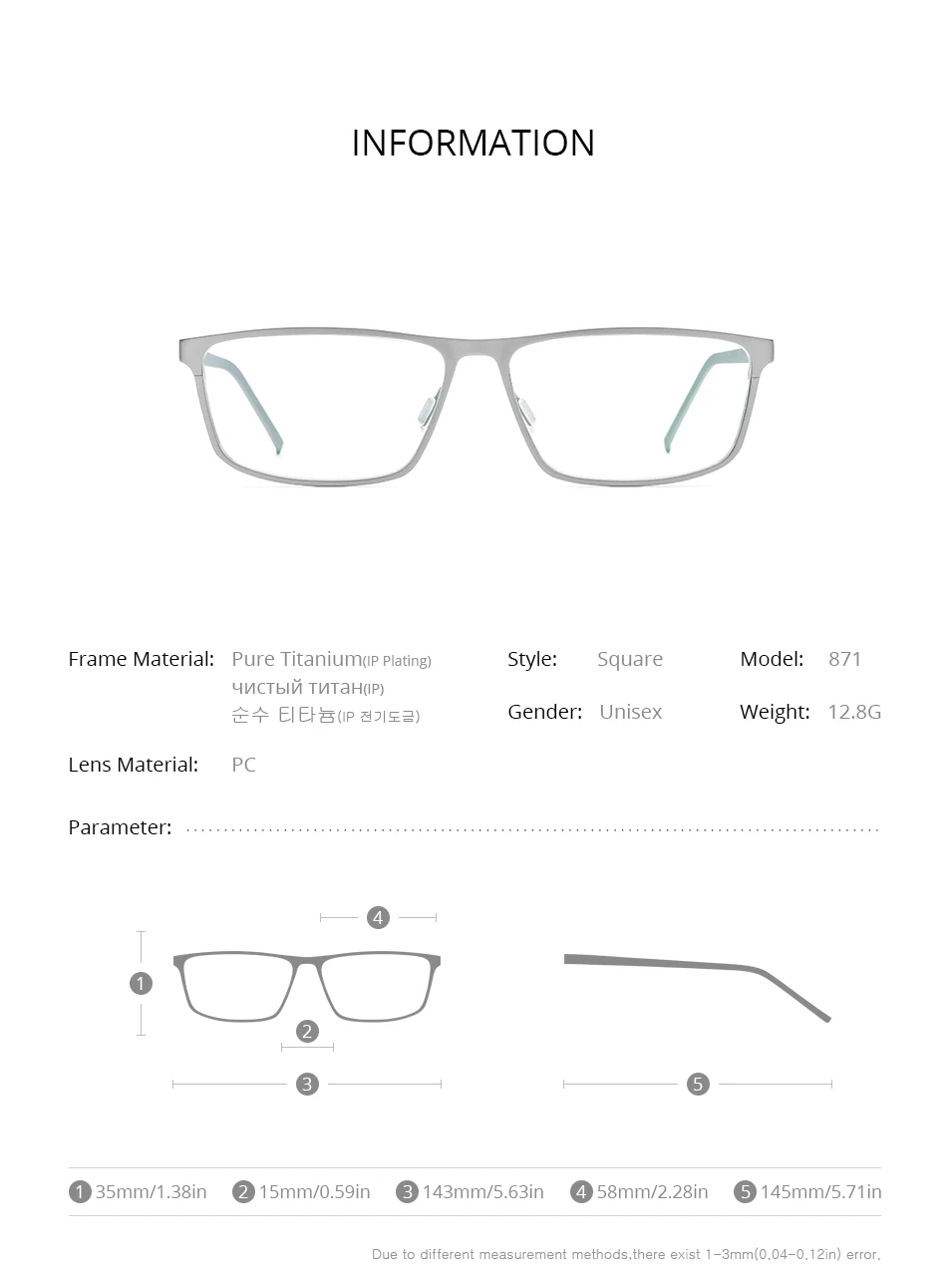 FONEX Мужские и женские очки для коррекции зрения в титановой оправе