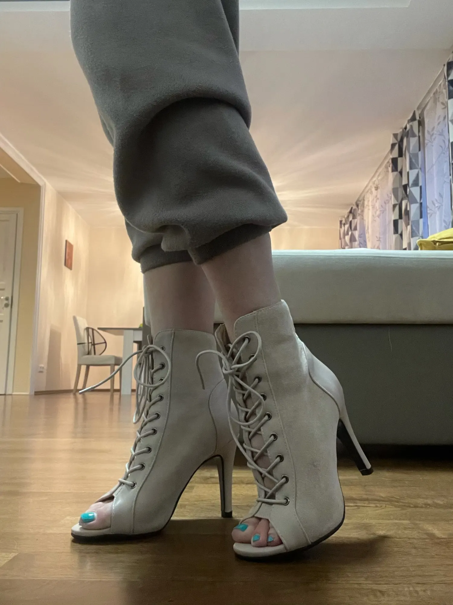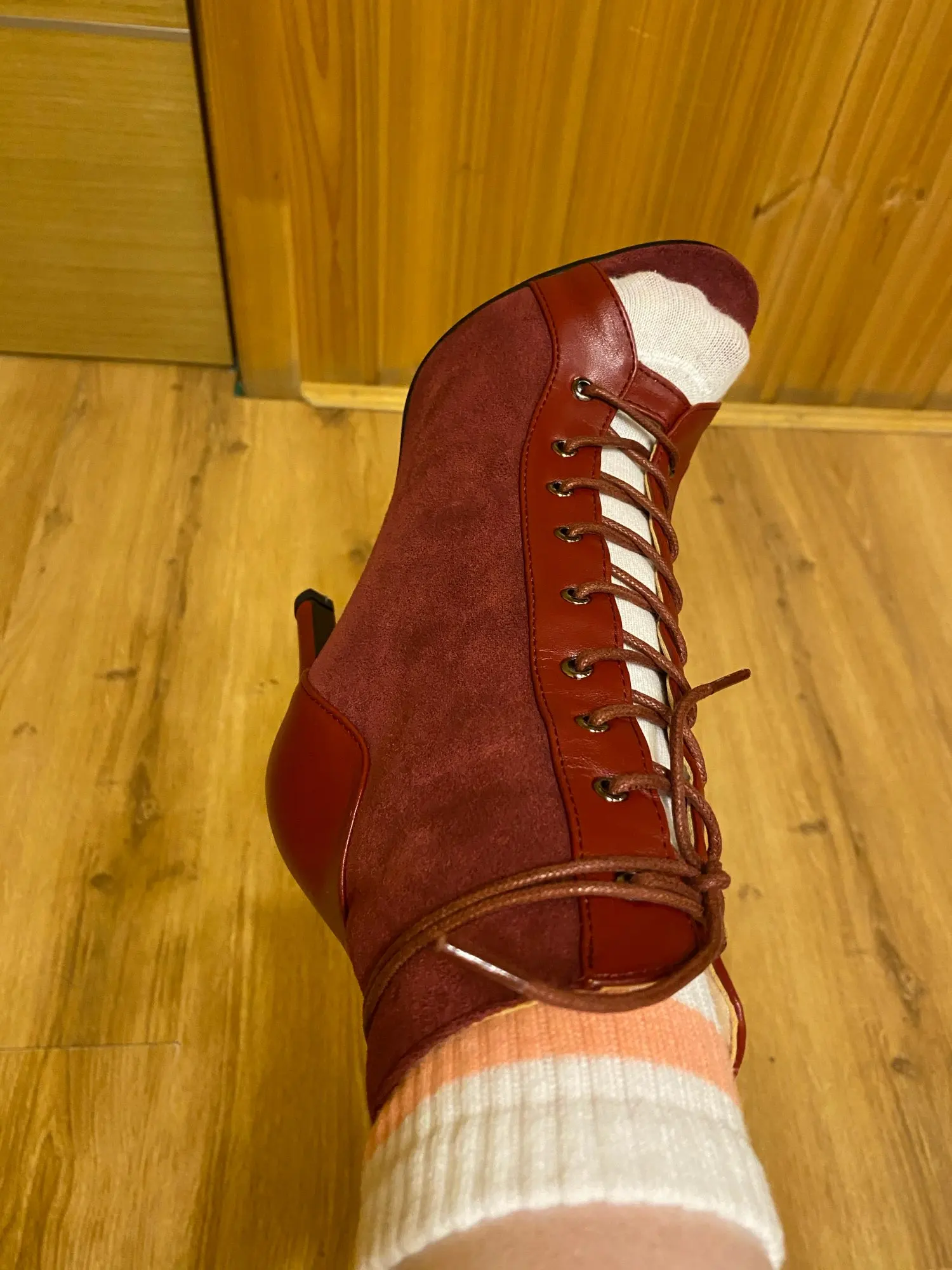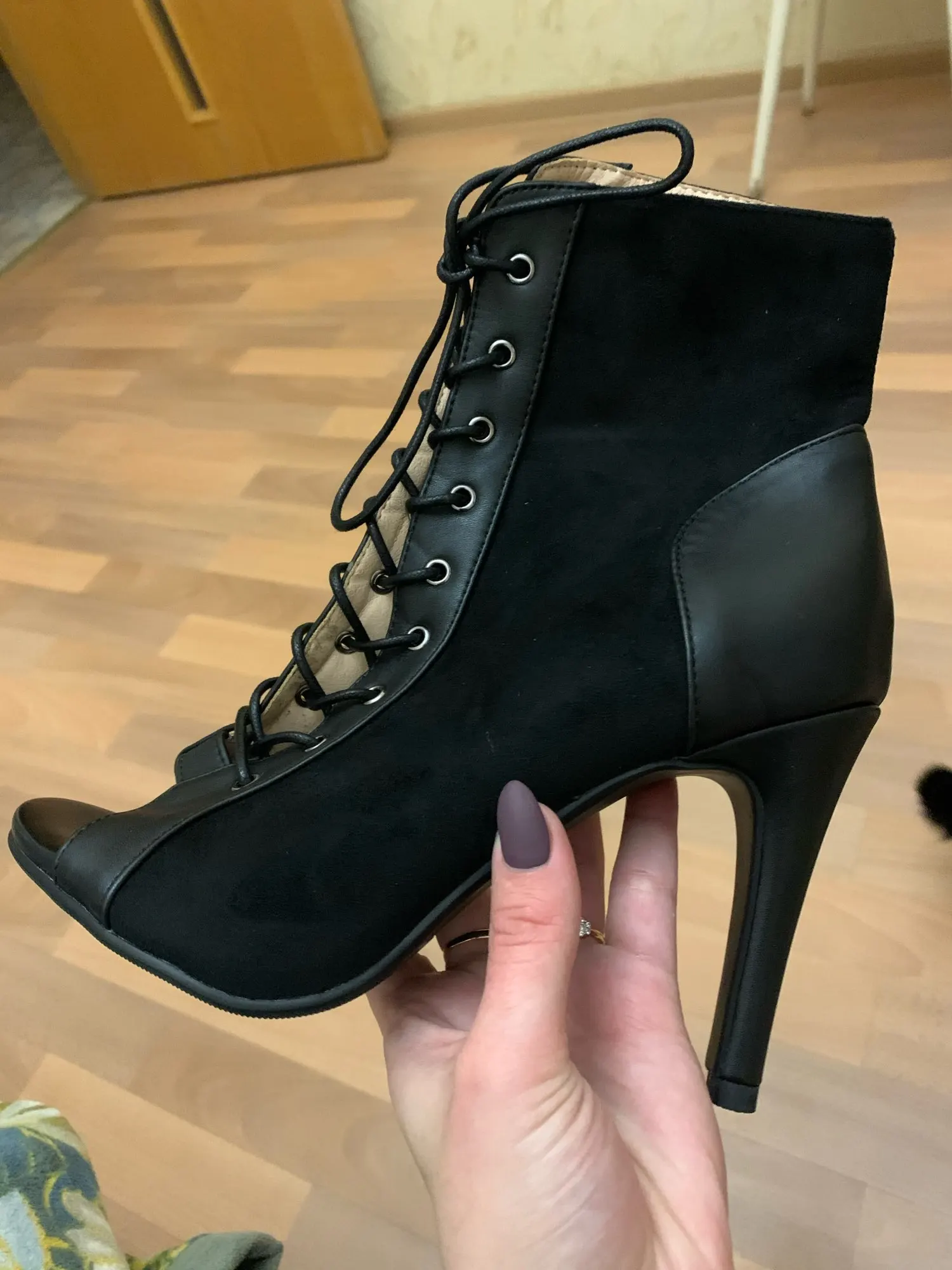 Обувь отлично подходит для танцев на высоком каблуке! Они идеально сидят, и ноги не скользят. Я ношу 35 европейских и заказывал этот размер-абсолютно подходящий. Очень удобно, и качество тоже хорошее. Я был приятно удивлен. Большое спасибо! Доставка занимает некоторое время-почти два месяца! Но обувь стоит ждать.