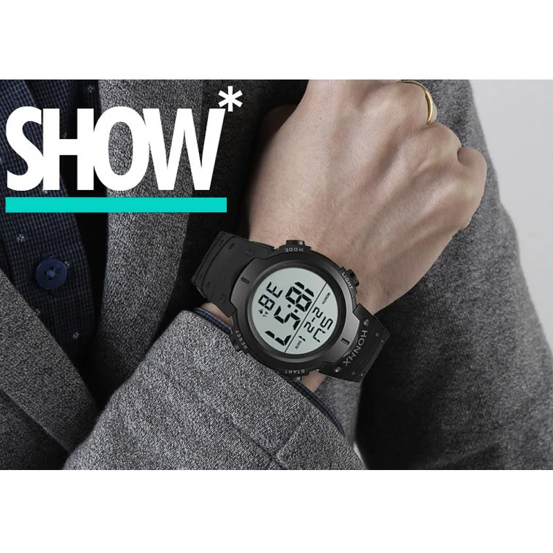 Часы наручные мужские с большим циферблатом, водонепроницаемые светодиодсветодиодный спортивные цифровые, с будильником