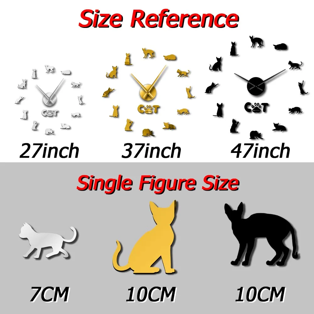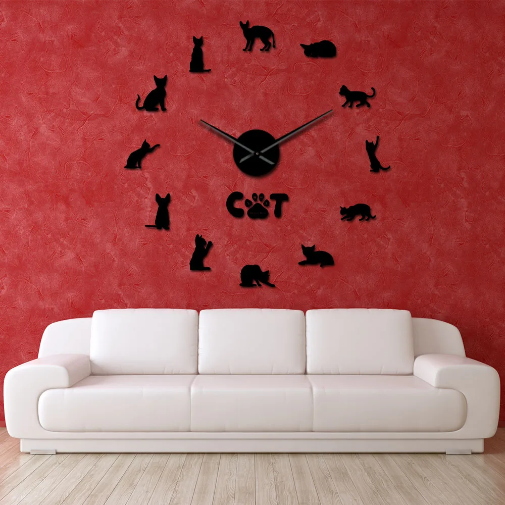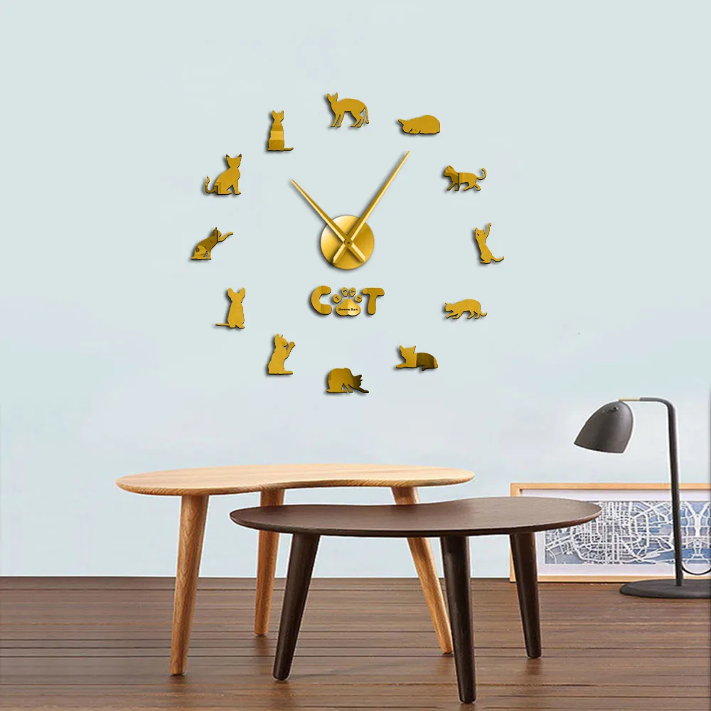 Большие настенные часы Devon Rex Cat 3D, акриловые часы с зеркальным эффектом, часы с изображением животных, кварцевые часы, работающие от батарейки, креативное шоу