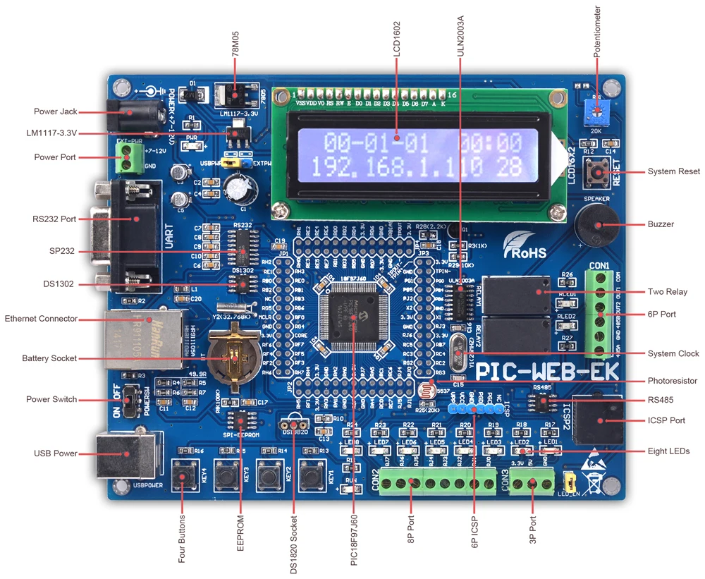 1.PIC 18F 97J60 Ethernet Плата развития (аккумулятор RTC не входит в комплект),1 шт.