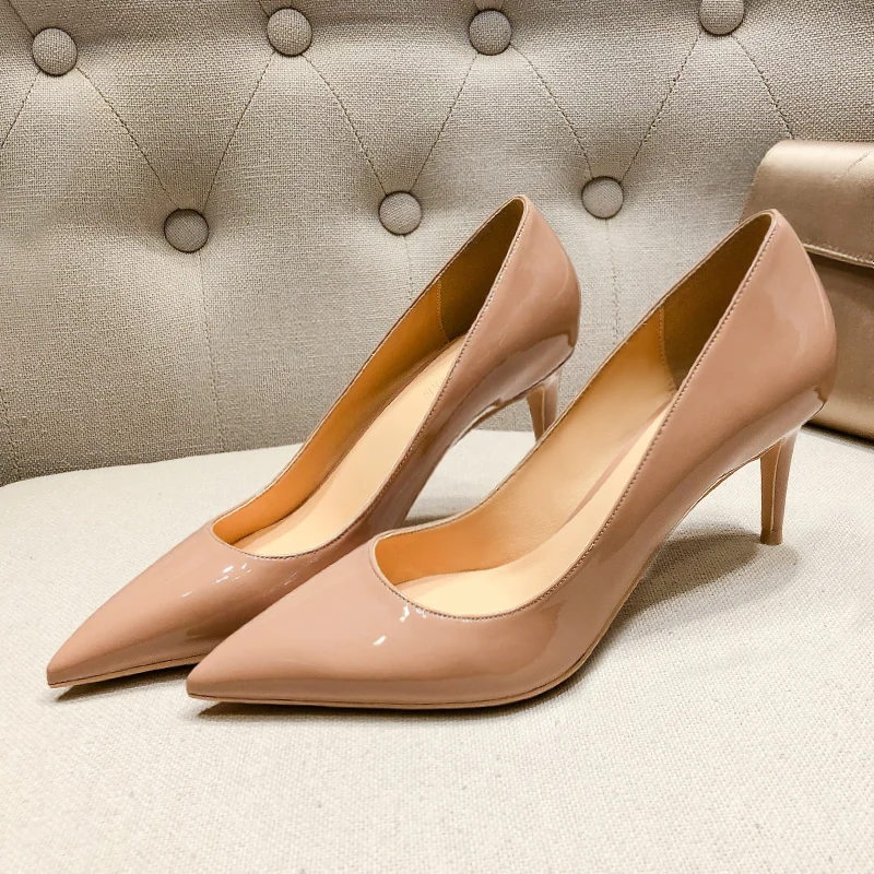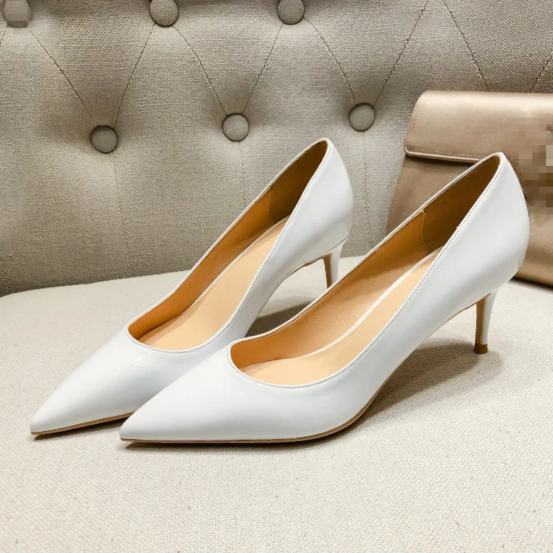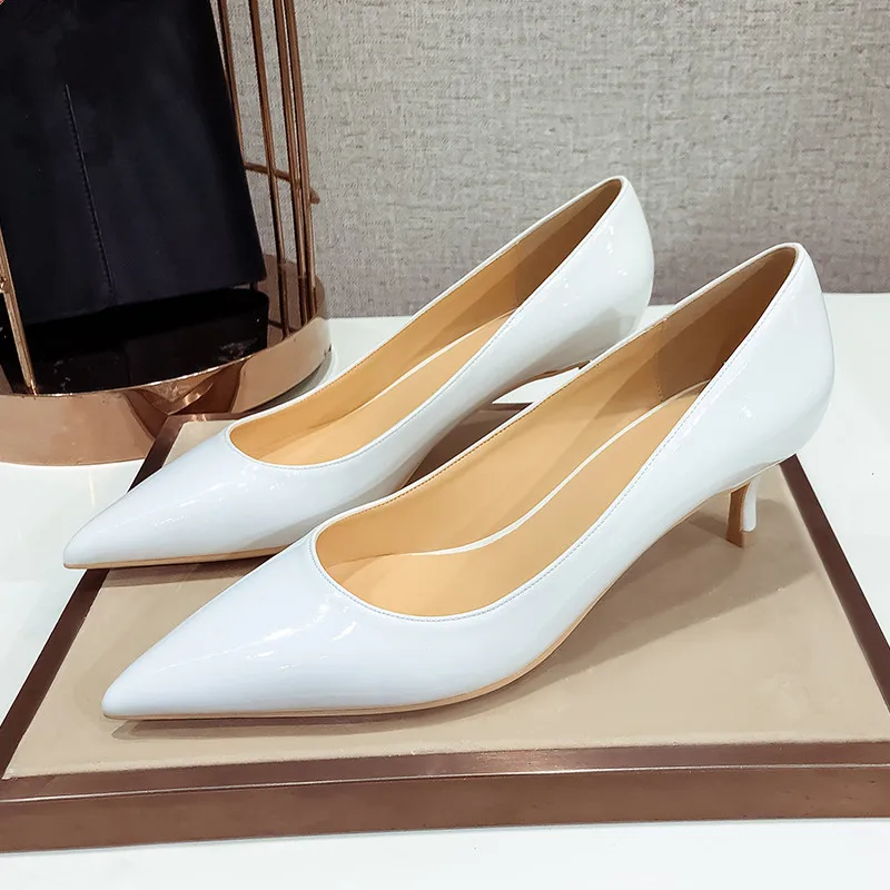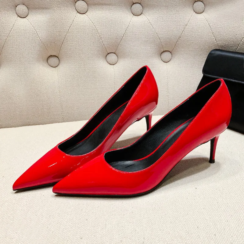 Туфли-лодочки женские демисезонные из натуральной лакированной кожи, на тонком высоком каблуке, красные, телесные, белые, B002
