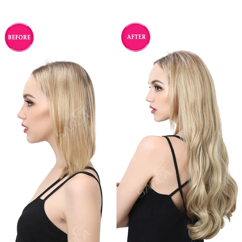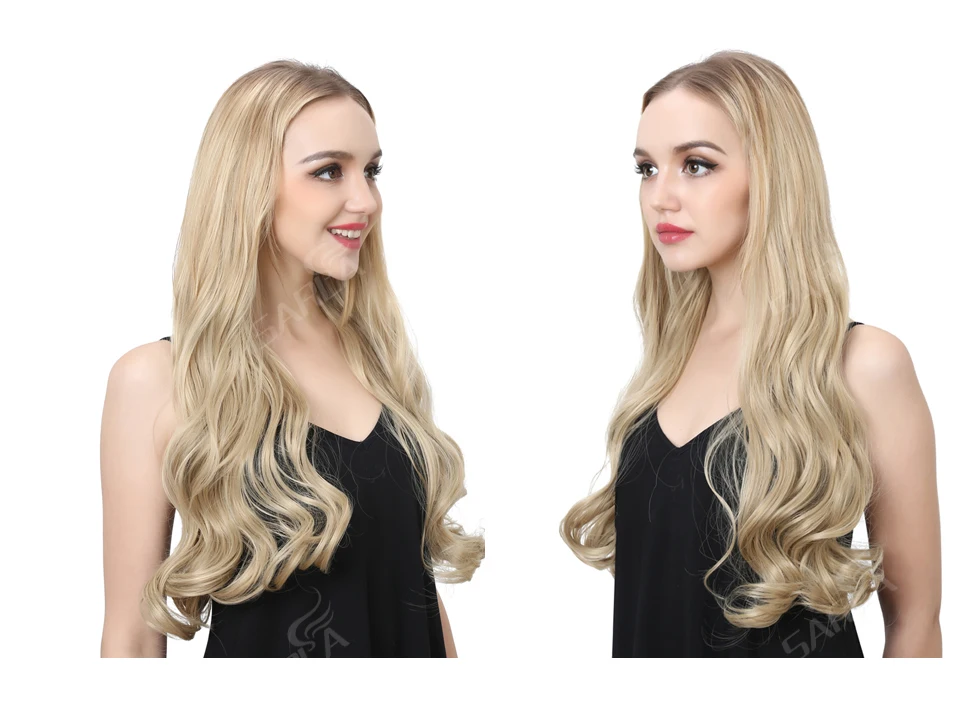 Синтетический длинный вьющийся полупарик SARLA с U-образной частью, невидимый коричневый, 22 дюйма, 34 парик для женщин, натуральный зажим для наращивания волос, коричневый парик UW012