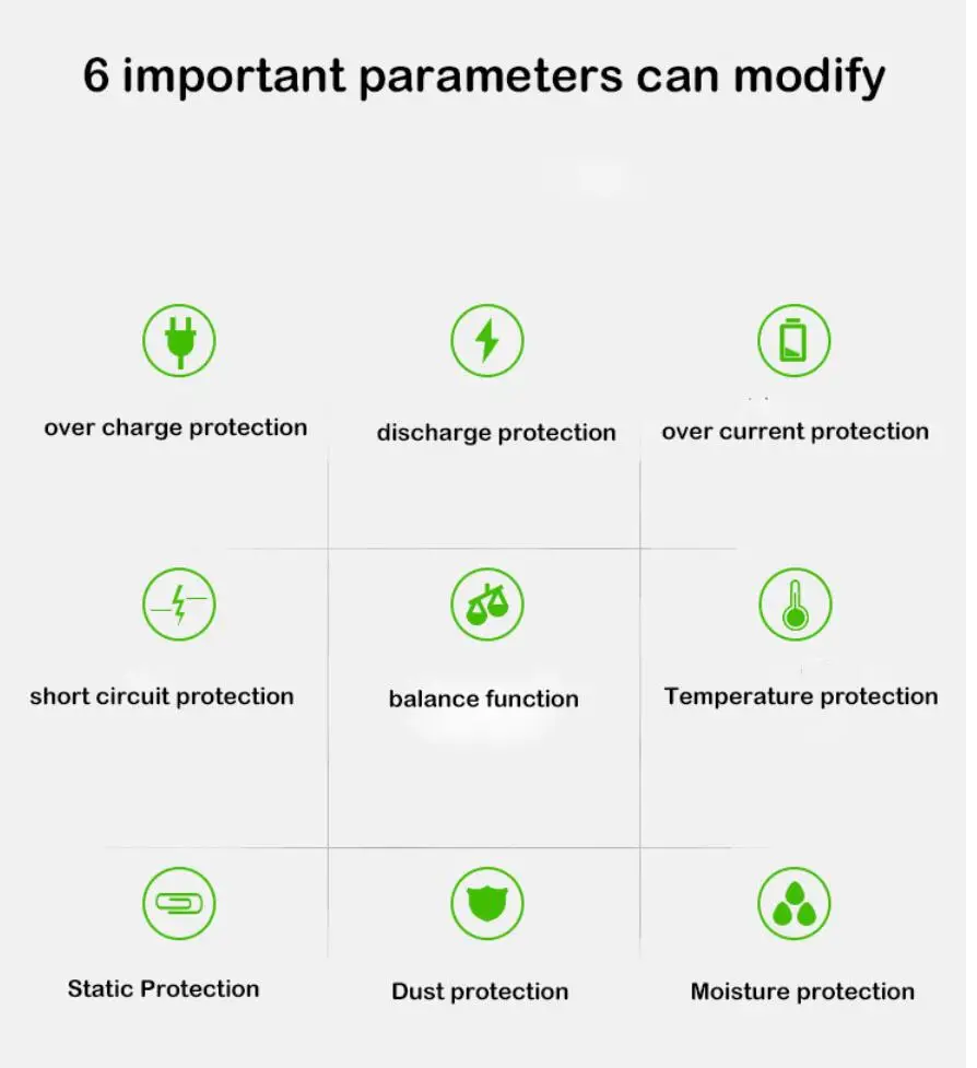 4) хотя встроенный блок электростатической защиты BMS, пожалуйста, не трогайте руки, когда BMS в рабочем состоянии, чтобы избежать повреждения от статического электричества.