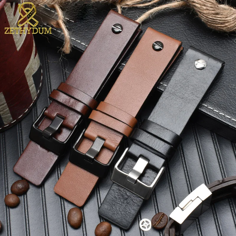Ремешок кожаный для наручных часов DZ4343 DZ7293 DZ7333, браслет для часов 22 24 26 28 30 мм