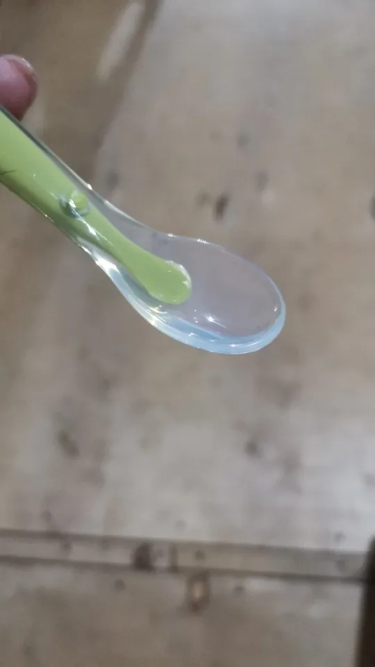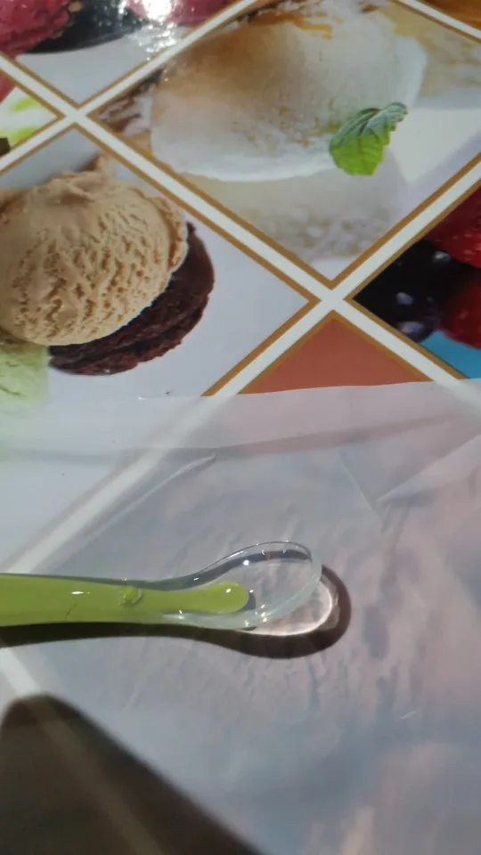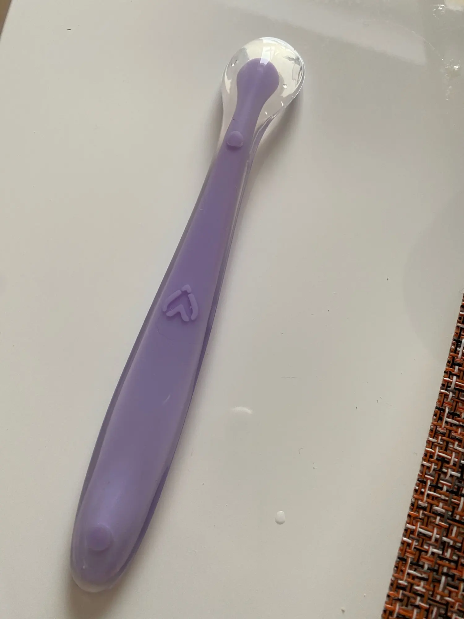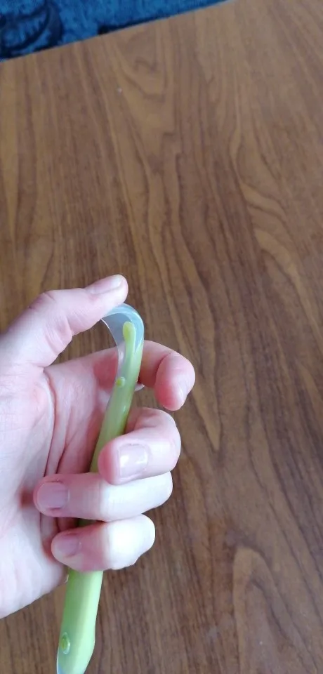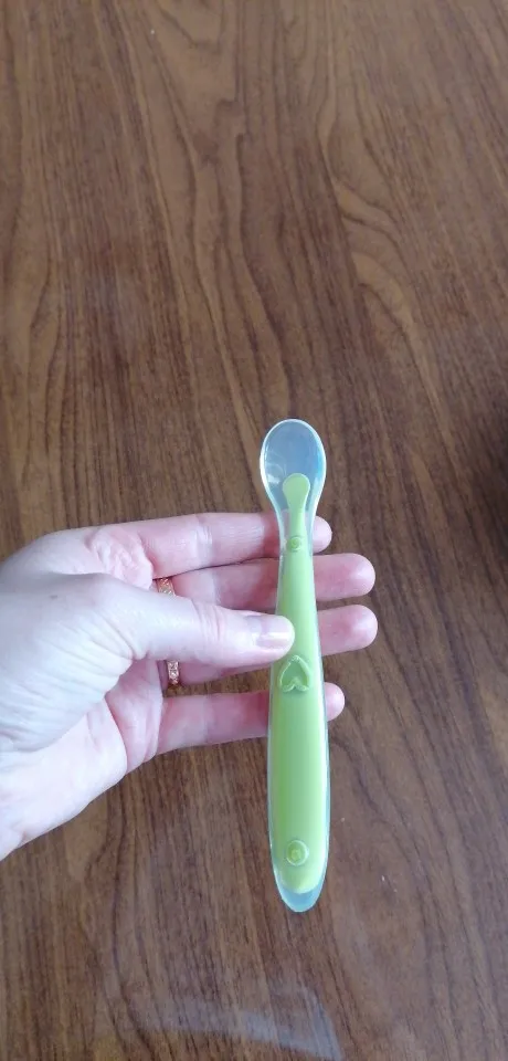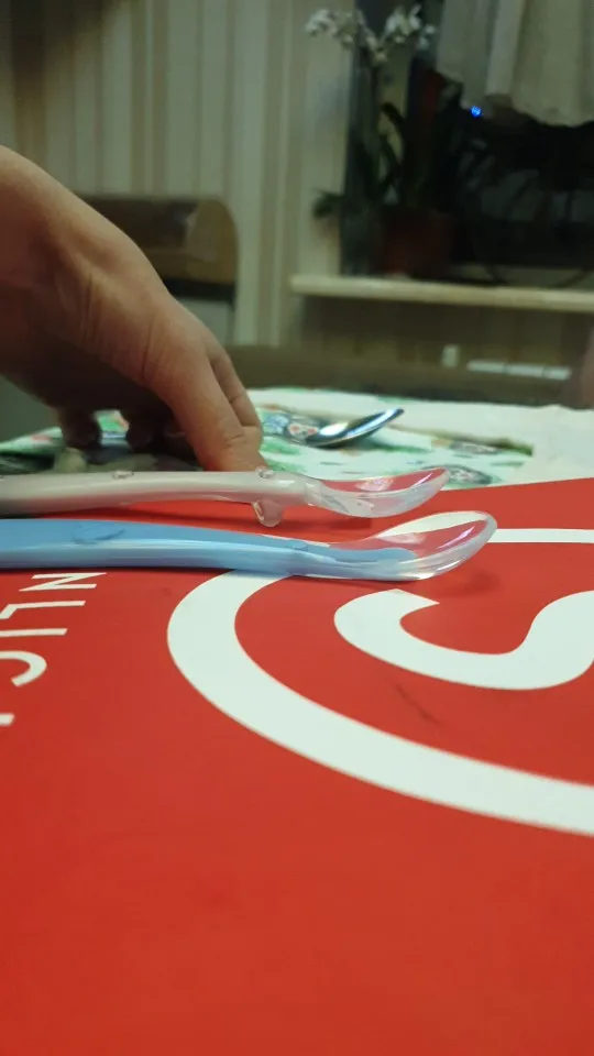 Шикарная ложечка, хоть и не меняет цвет при температуре выше 40°. Ложечка пришла как на фото. ! Не в коем случае не стерелизуете в "стерелизовочном пакете" в микроволновке! Пластик закипел под латексом(((( Производитель не виноват