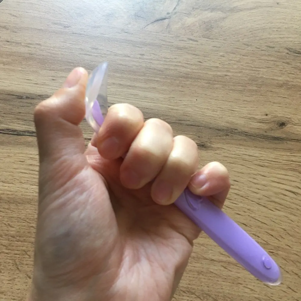 Отличная ложечка. Я такую у себя в городе покупала за несколько сотен. Мягкие, с широкой ручкой, не скользят. Рекомендую