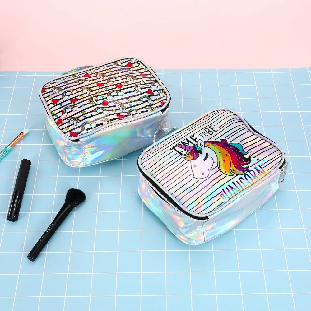 Модная сумка GABWE, лазерная сумка для женщин, косметичка в виде единорога, милые косметички, голографические косметички для путешествий