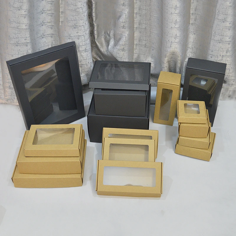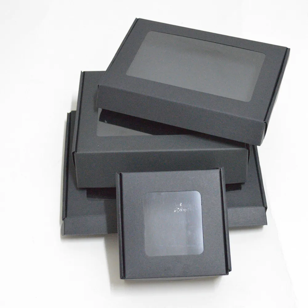 20 шт., черная большая подарочная коробка, коробка на заказ, прозрачная оконная коробка, большие подарочные бумажные коробки, бумажная картонная коробка для упаковки