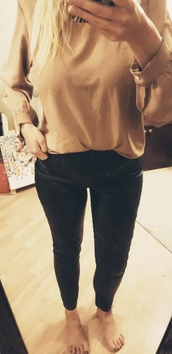Даже не знаю..... По этим брюкам есть фиговый отзыв с фото, где это "кожаное покрытие" облезло после первой носки. на российский s, заказала L. по размерной сетке. Сели не в охрененный натуг. Наверное это и хорошо. Они похожи на немногоразовые брюки так сказать.