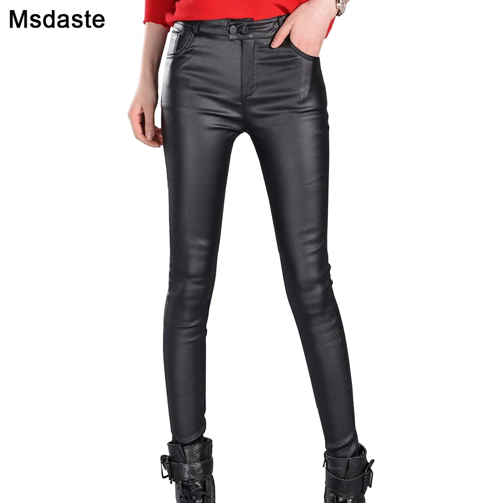 Брюки женские осень весна женские леггинсы винтажный искусственная кожа тонкая высокая талия повседневные женские брюки Кожа Черный Тонкие брюки