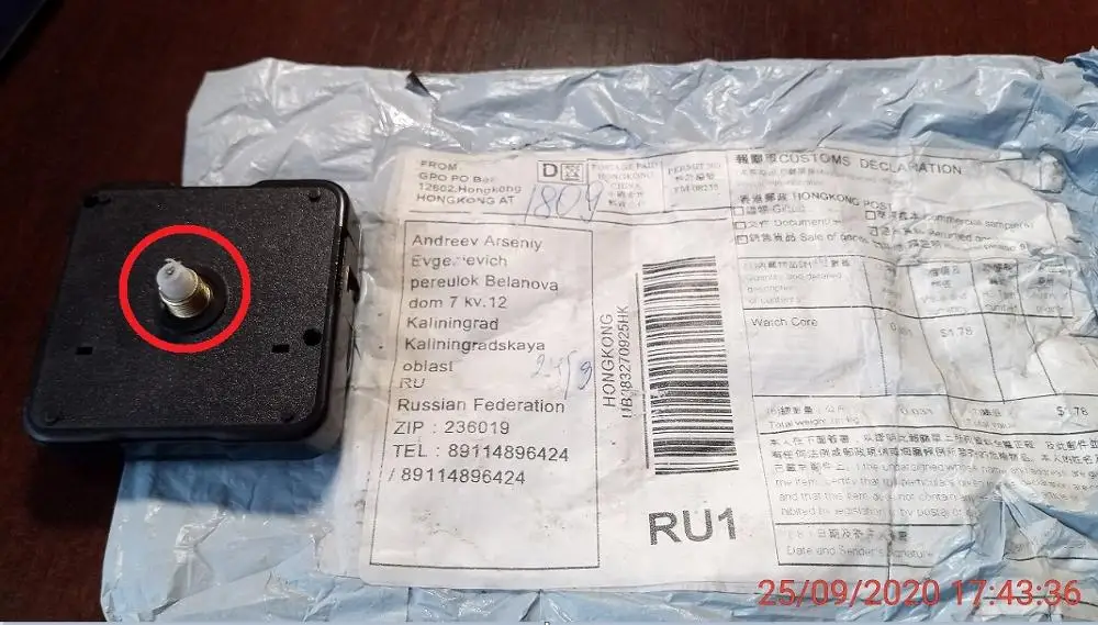 Заказал-оплатил - 2020-09-03. Получил посылку (Россия, Нижний Новгород) - 2020-09-15. Меньше 2-х недель! Это просто отлично для AliExpress Standard Shipping . По дороге посылка консолидировалась еще с одной. Так что в одном пакете пришло два пакета с заказами от разных продавцов. Часовые механизмы упакованы просто в пупырчатый почтовый пакет. Все пришло в целости и сохранности. Соответствует описанию. Оба механизма опробовано - работают. Стрелка идет плавно, совсем тихие. Я доволен. Мои рекомендации и товара и продавца
