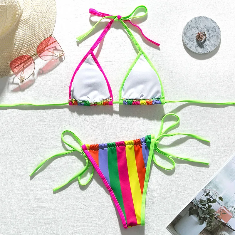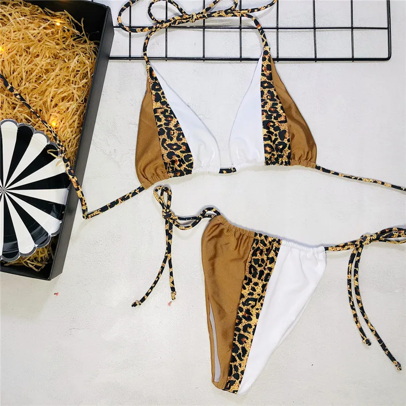 Бикини Peachtan с лямкой через шею, бразильский купальник с леопардовым принтом, Женская купальная одежда в стиле пэчворк, купальный костюм, лето 2020