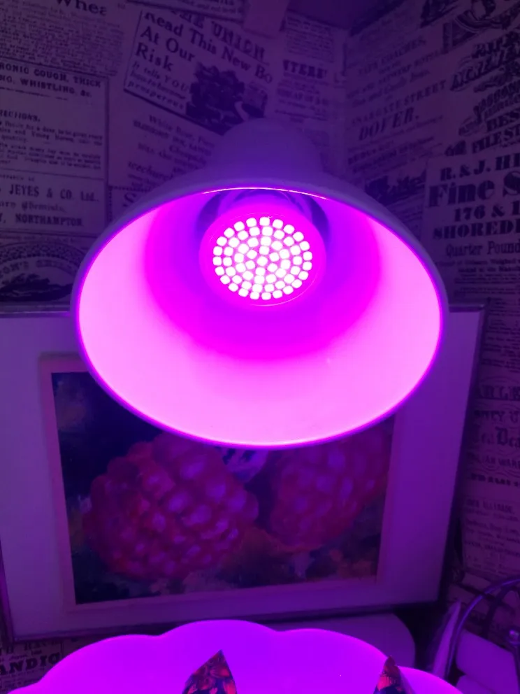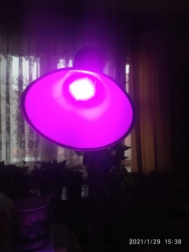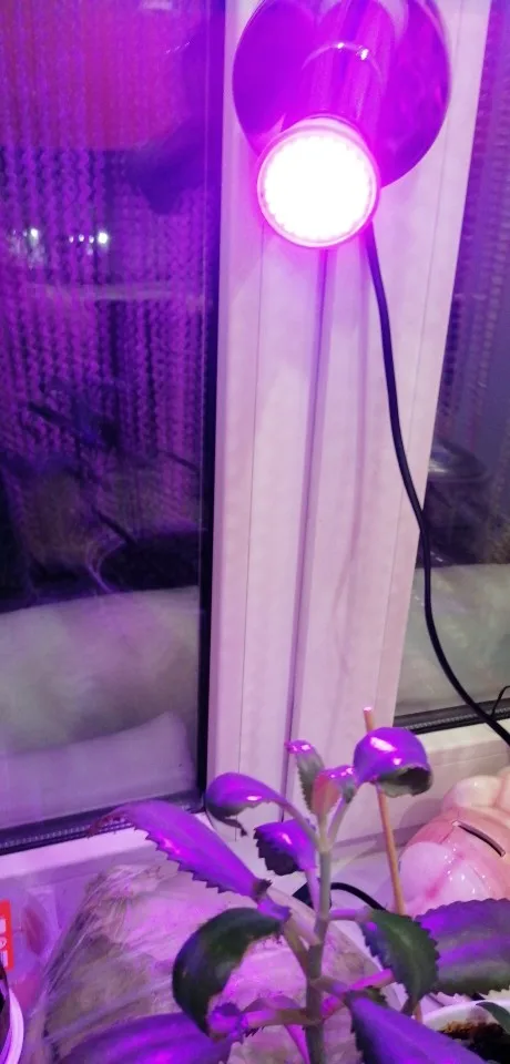 Пришли 2 лампочки довольно быстро, вкрутила в настольные лампы, все работает, но как по мне светят слабо, только на 2-3 растения хватит под лампу поставить. Поставила свои растения под нее, посмотреть как реагировать будут. вдали стояла фиалка, через час начала тянуть цветы и листья в сторону лампы, значит ей нравится свет. Про эффект говорить рано, но похоже растениям нравится, на обычный белый свет так не реагируют.