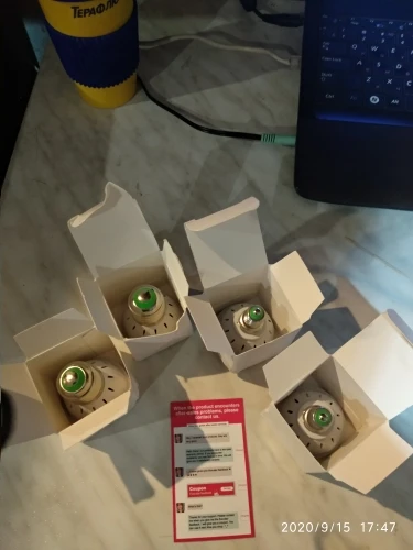 Товар пришел быстро.Но после распаковки и проверки повёл себя неадекватно. Лампачка номер один,спустя три минуты после включения начала источать сильный запах паленой пластмассы,и пошел слабый дымок, начала потрескивать,после активного мигания совсем погасла.Общее время горения 5 минут в среднем.После извлечения из патрона корпус лампочки повело в сторону и деформировало. Лапачка номер два горела минут 15,вначале не было ни треска ни запаха .После начала трещать ,мигать.Погасла и больше не включилась. По факту обе лампочки некачественные.Фото деформированных корпусов прикладываю. Товаром очень не доволен.