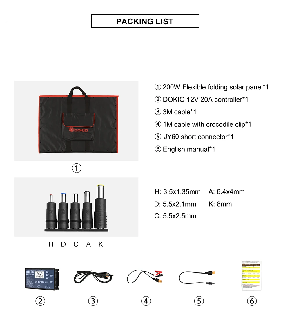 Солнечная панель Dokio Складная, 18 в, 200 Вт, 20 А