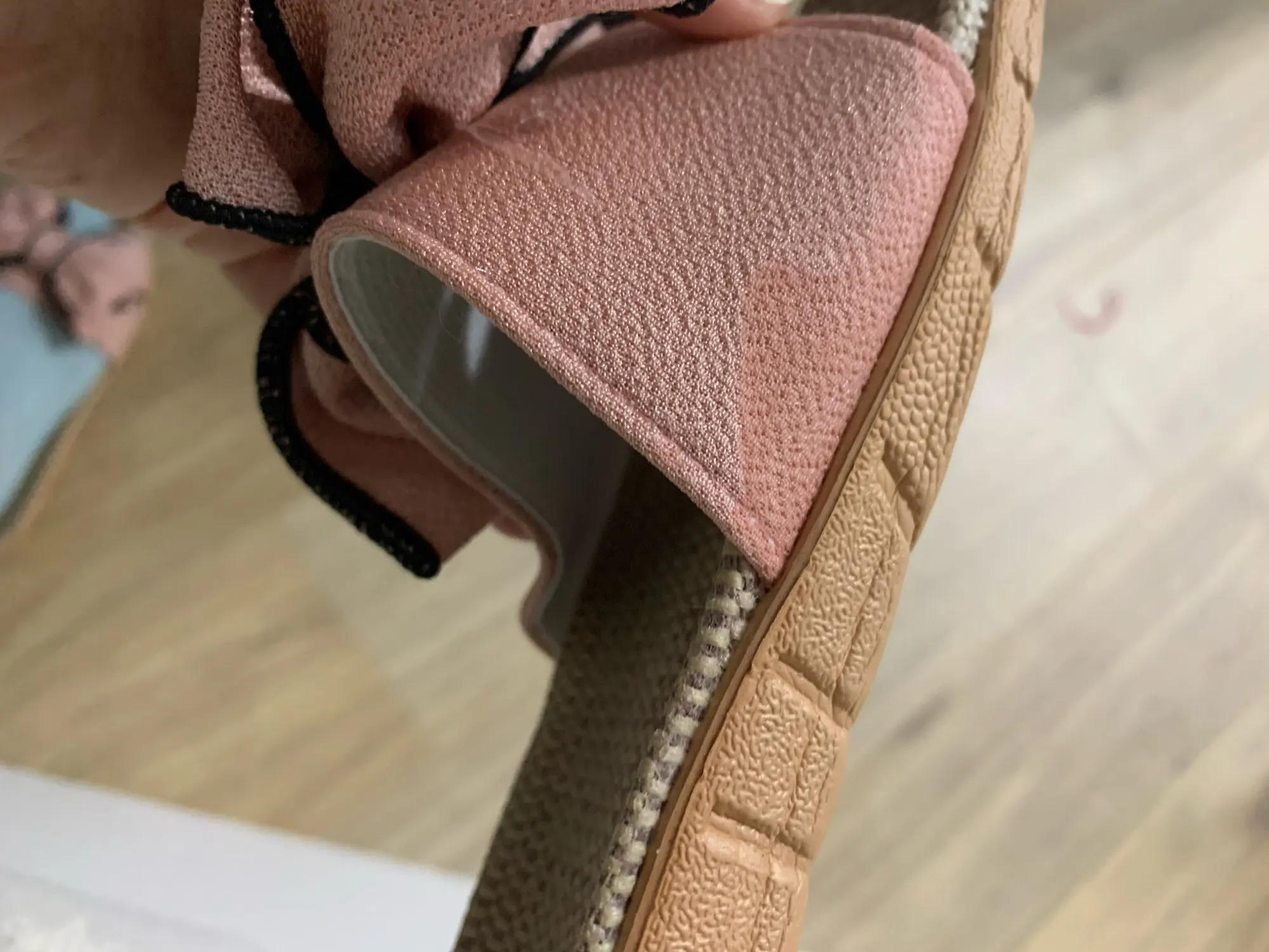 На фото сверху - красивые, но цена им доллара 2, не больше. Подошва - дешевый пластик, как на бабушкиных тапках с рынка. В моём экземпляре ткань пропиталась клеем и выглядит неопрятно. Единственный плюс - нога не потеет.