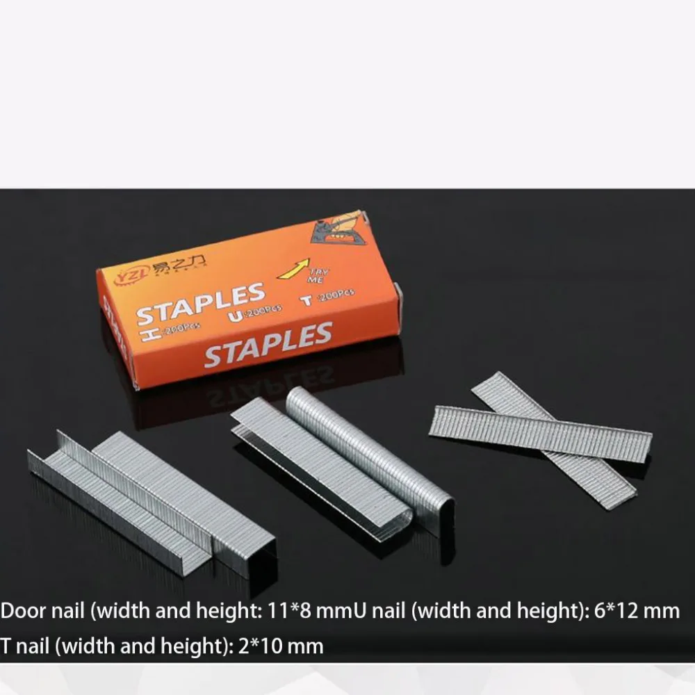 Описание Дизайн с дверными, u-образными, Т-образными скобами для удовлетворения ваших различных потребностей в различных случаях. Изготовленные из высококачественной стали, скобы обладают долговечностью. Поставляется с 1000 шт., что является практичным и экономичным для вас. Широко используется, может быть применен для фиксации проволоки, армирования мебели, деревообработки, изготовления картонных коробок и т. д. Может также использоваться для переплетения, изготовления досок, каллиграфии и живописи, армирования деревянных коробок и так далее.