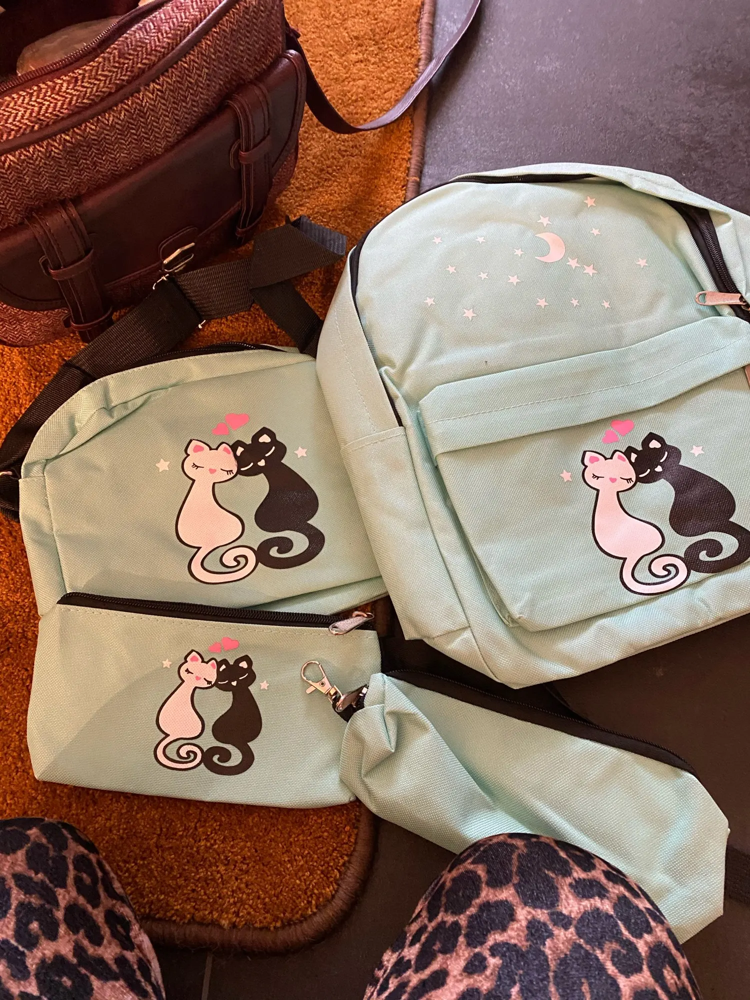 4 шт.компл. женский рюкзак с принтом кошки, холщовые школьные ранцы...