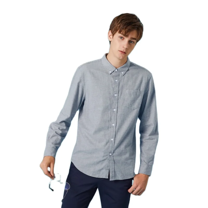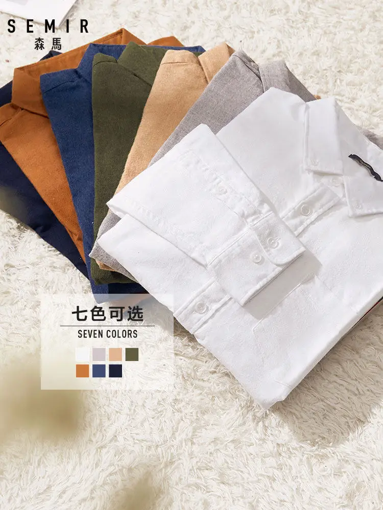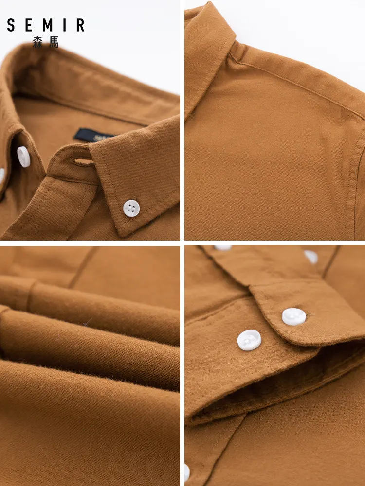 Рубашка SEMIR мужская с отложным воротником, приталенная сорочка из 100% хлопка, повседневная с длинными рукавами и пуговицами на талии