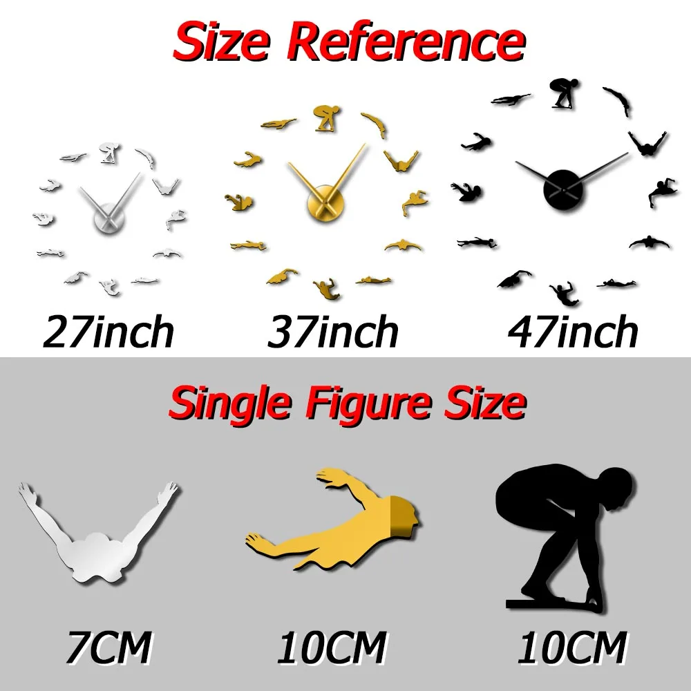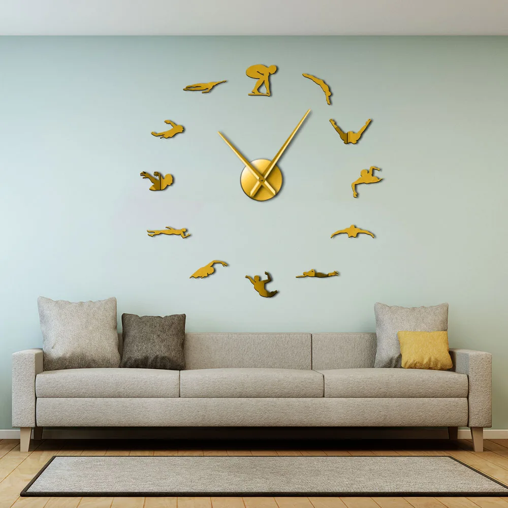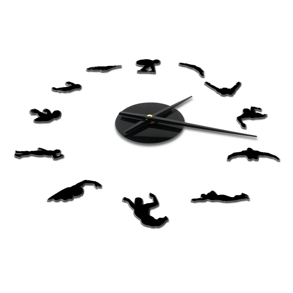 3d-часы для плавания, спортивные настенные часы сделай сам, уникальный подарок для плавания, зеркальная поверхность, тихие часы с подметанием, спортивные модные украшения для дома