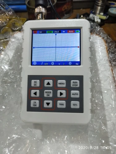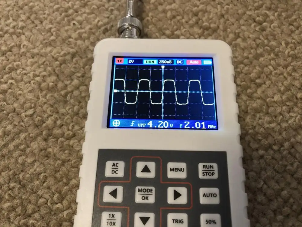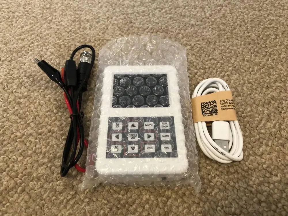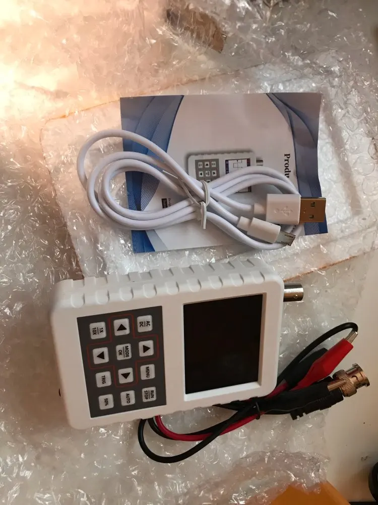 Осциллограф прибыл в Сибирь через 12 дней (заказан 11 числа). Хорошо упакован в пенопластовую коробку, есть USB-провод для зарядки, инструкция, крокодилы (щуп не заказывал) и сам осциллограф. Провел ШИМ, отлично. Осциллограф хорошо лежит в ладони. Рекомендую!
