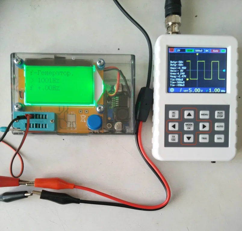 Посылка пришла за месяц. Осциллограф основные свои функции выполняет. Как поведет себя в работе покажет. Пока осваиваю. Приходится носить его в барсетке, нет под него футляра. За свою цену, такой осциллограф устраивает. Для ремонта телевизоров с верхом хватит. Главное можно носить с собой. Выключатель у него очень маленький. Родные щупы не катят, два крокодила. В показаниях не разобрался фигня какая то.