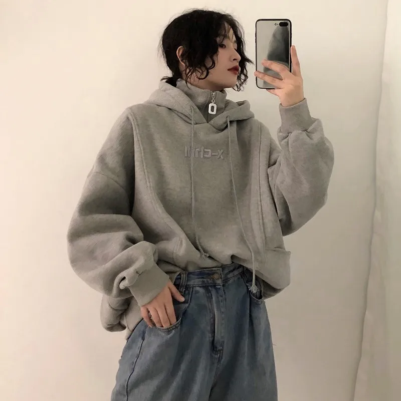 Женская толстовка с капюшоном, зимняя теплая Толстая Толстовка с длинным рукавом и надписью в Корейском стиле Харадзюку