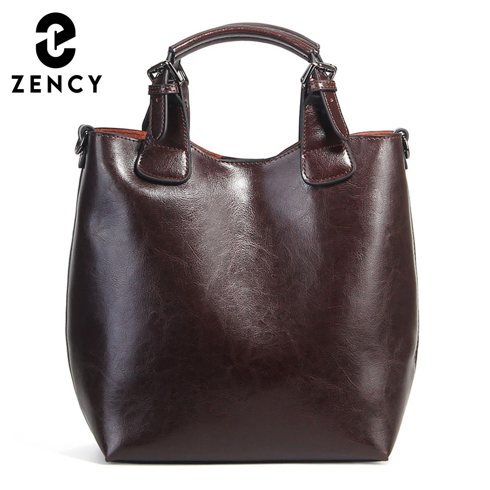 Сумка-тоут женская из натуральной кожи, в стиле ретро, кофейного цвета, Классическая, Черная