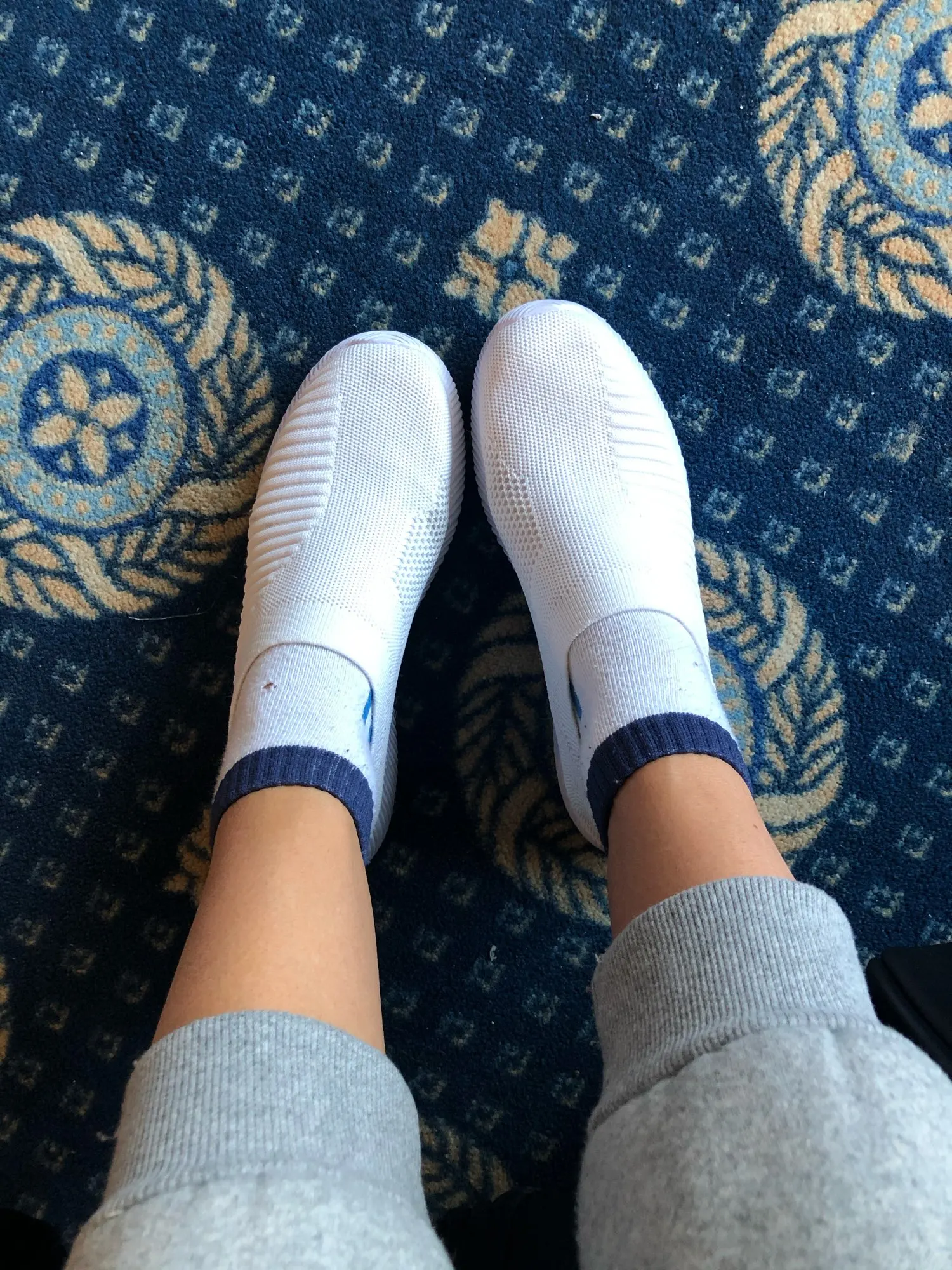 Тапочки супер удобные, легкие, мягкие. Я в них танцую на голую ногу, немного натирает мизинцы, но мне любая новая обувь натирает обычно. Немного большемерят, буквально на полсантиметра, размер 6 на стопу 23.5 чуть большеваты, но резинка хорошо держит, поэтому ок. Стиральную машинку отлично пережили, но отстирываются плохо, белые уж очень маркие.