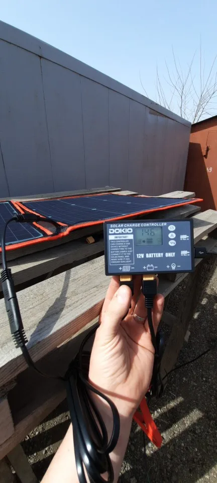 Дошло за 6 дней (из России). всё работает, аккумулятор, телефон - заряжает. За полтора -два часа до захода солнца подключил лампочку дальнего света (55 Вт) - светила.