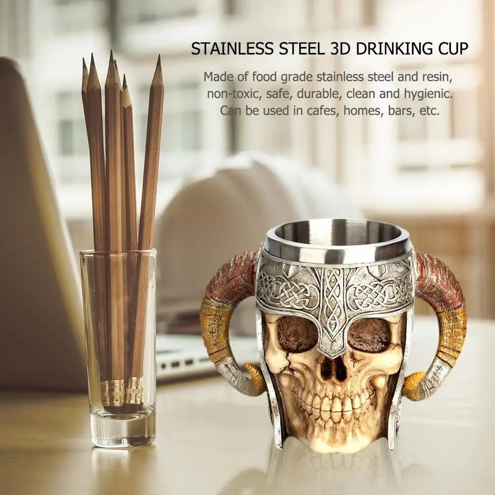 Кружка-Череп из нержавеющей стали, кружка викингов, питьевая кружка, скелет, резиновая кружка для пива, кофейная кружка, чашка для чая, Хэллоуин, бара, посуда для напитков, подарок