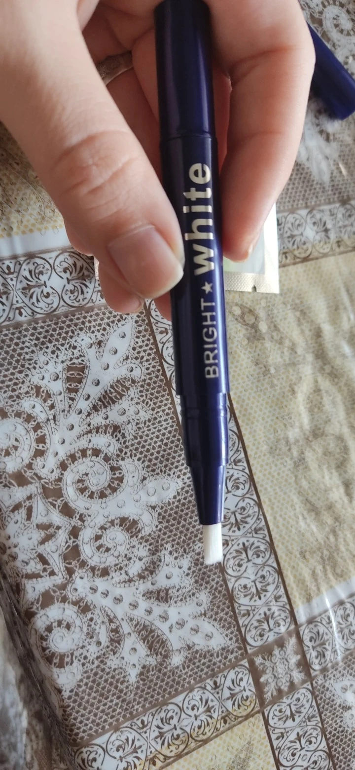 Не знаю на что потратила деньги, но поживём увидим :D ручка пришла в простом пакете, даже пупырки не было. Но пришло все целое. Расстроило то, что нет никаких рекомендаций по использованию, дат изготовления и срока годности, абсолютно никакой информации. Гель пахнет клеем (даже воняет я бы сказала), горький. Использовала один раз, поэтому ничего не могу сказать по качеству отбеливания. Дополню отзыв.