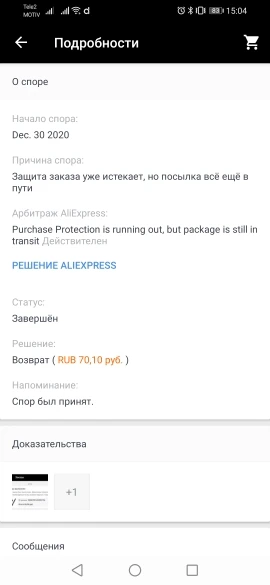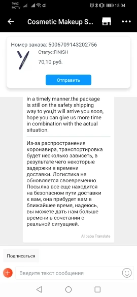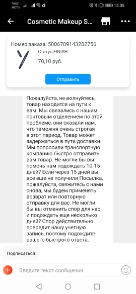 Товар НЕ пришёл, а в статусе указали доставлено. Сначала продавец не читал сообщения об оканчании срока защиты, но когда открыла спор, продавец сразу начал слать сообщения "подождите ещё" "закройте спор". Считаю это недобросовестным отношением к покупателям. Январские заказы пришли, а этот с 12 ноября пропал. То у продавца таможня строгая. У других продавцов не строгая почему то. Деньги вернули когда вмешался алиэкспресс.