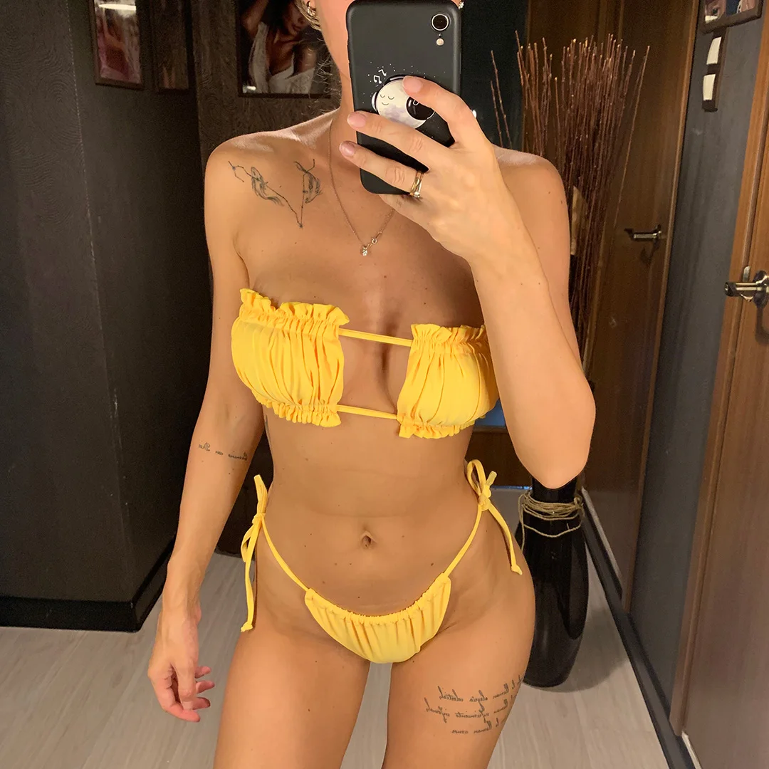 Новый плиссированный бандо, Бразильское бикини, 2021, купальник, же...