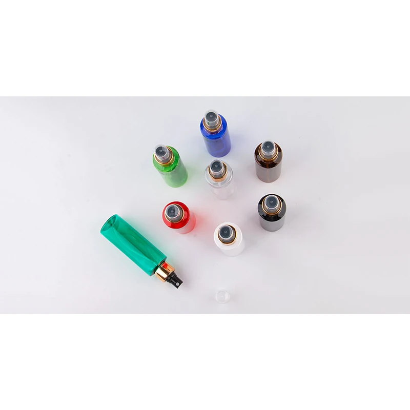 Емкость: 100 мл Размер: 38x151 мм Материал: ПЭТ + ПП Цвет: прозрачный/белый/красный/зеленый/бирюзовый/синий/коричневый/черный/темно-зеленый флакон + золотой белый/прозрачный/черный распылитель
