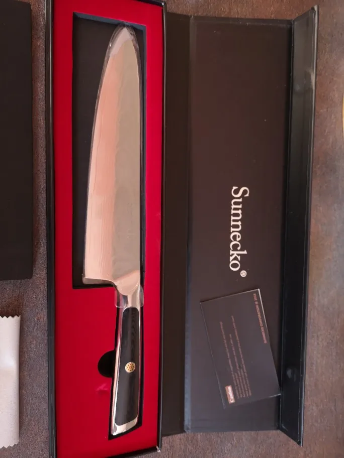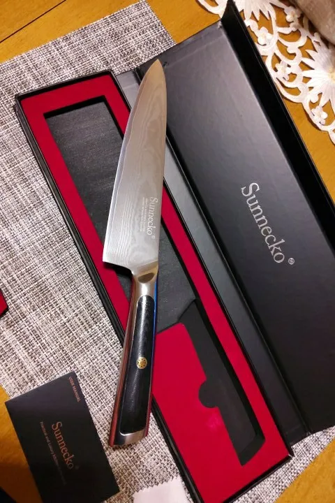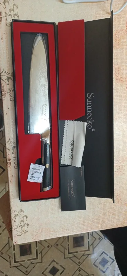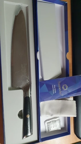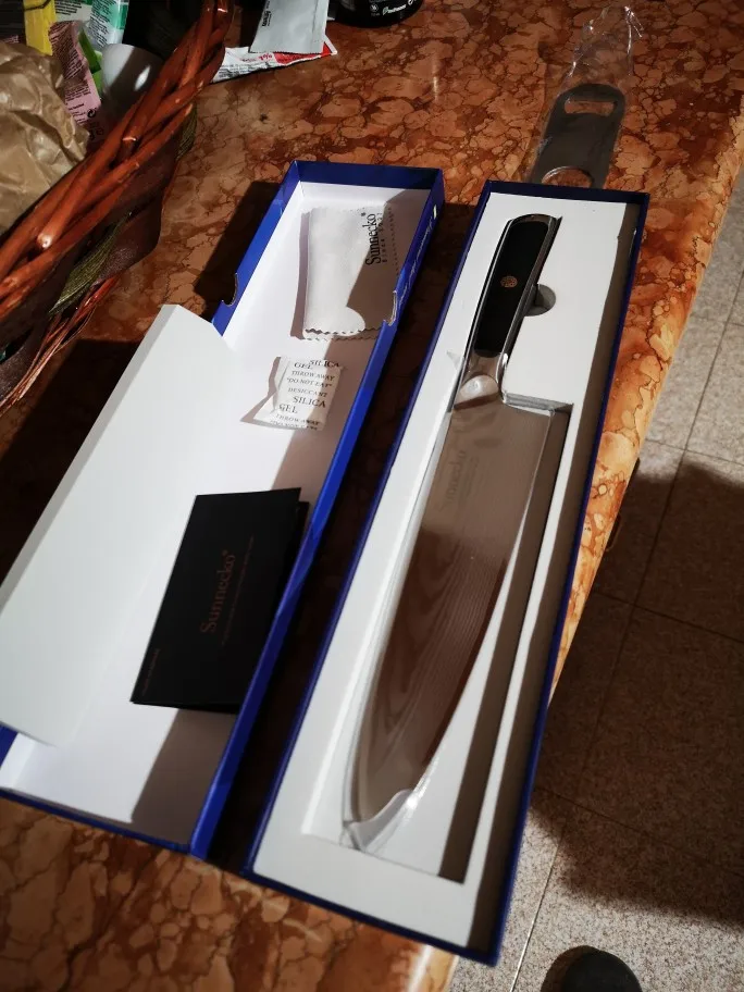 Я очень доволен своей покупкой. Нож действительно красивый кусок, отличное качество изготовления и контроля. Описание соответствует статье, коробка красивая и нож хорошо защищен. Я получил продукт без дефектов и очень острый. У меня было возможность использовать его несколько раз, он хорошо сбалансирован, всегда хорошо режется. После этого 8-дюймовый нож остается довольно тяжелым. (Все относительно), наконец, он прибыл довольно быстро, как и ожидалось, и не стоит беспокоиться о таможне. Короче говоря, я очень доволен своей покупкой и не могу дождаться, чтобы изменить порядок :) спасибо