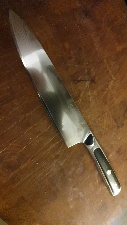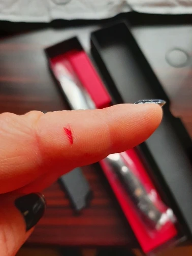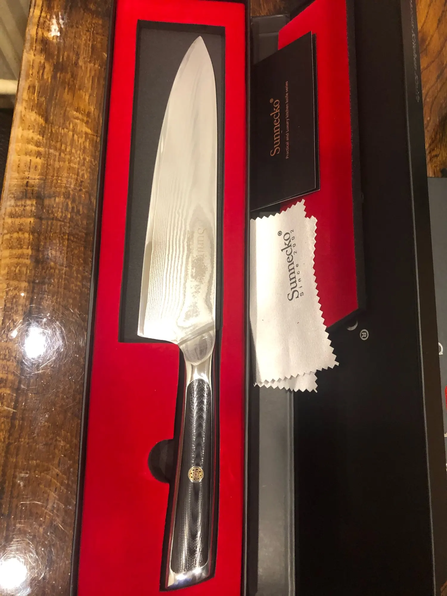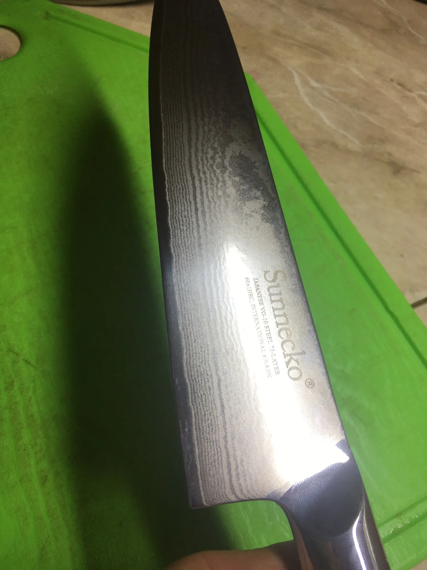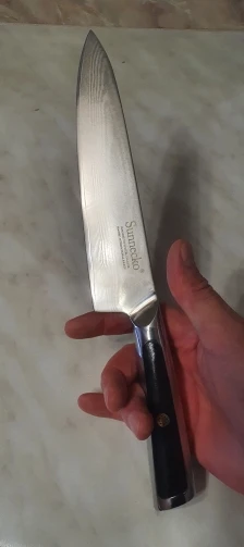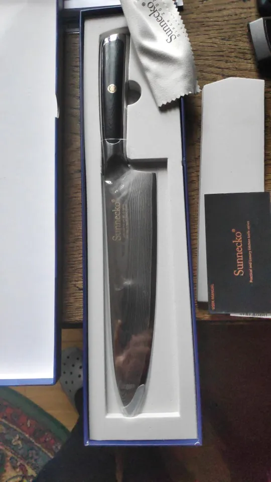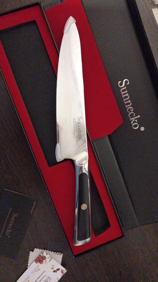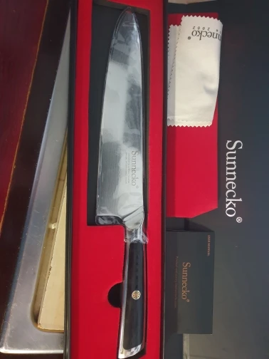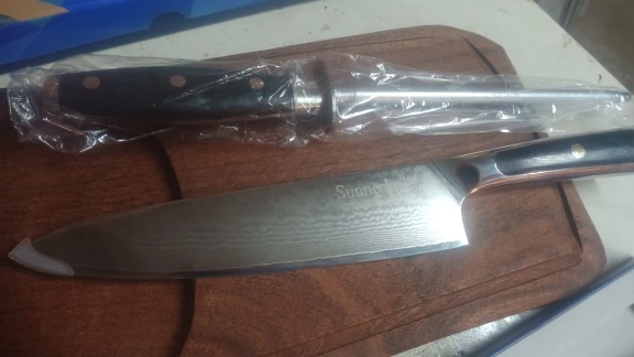 Потрясающий нож, лучше, чем я ожидала. Я готовлю и использую это в основном для резки мяса, и это идеально. Быстрая доставка является бонусом.
